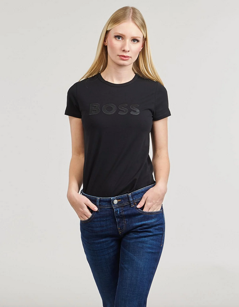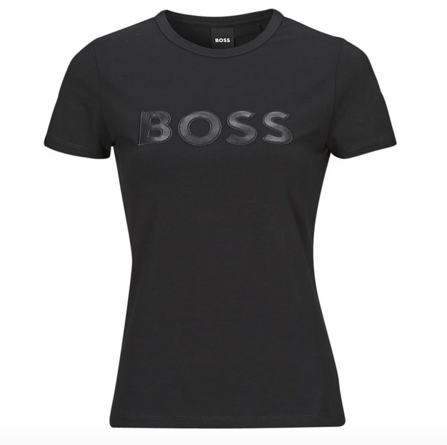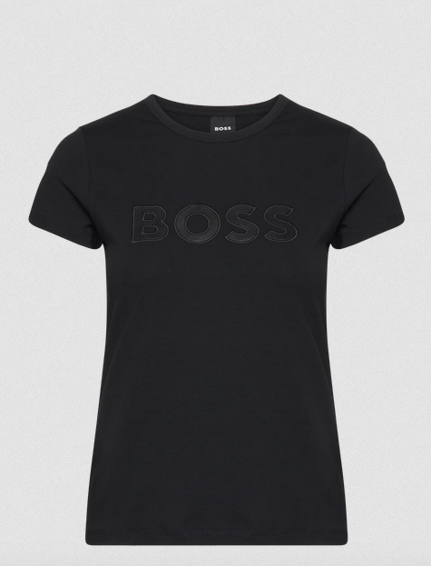 Hugo Boss Eventsa4 Black Leather Logo Cotton T-Shirt