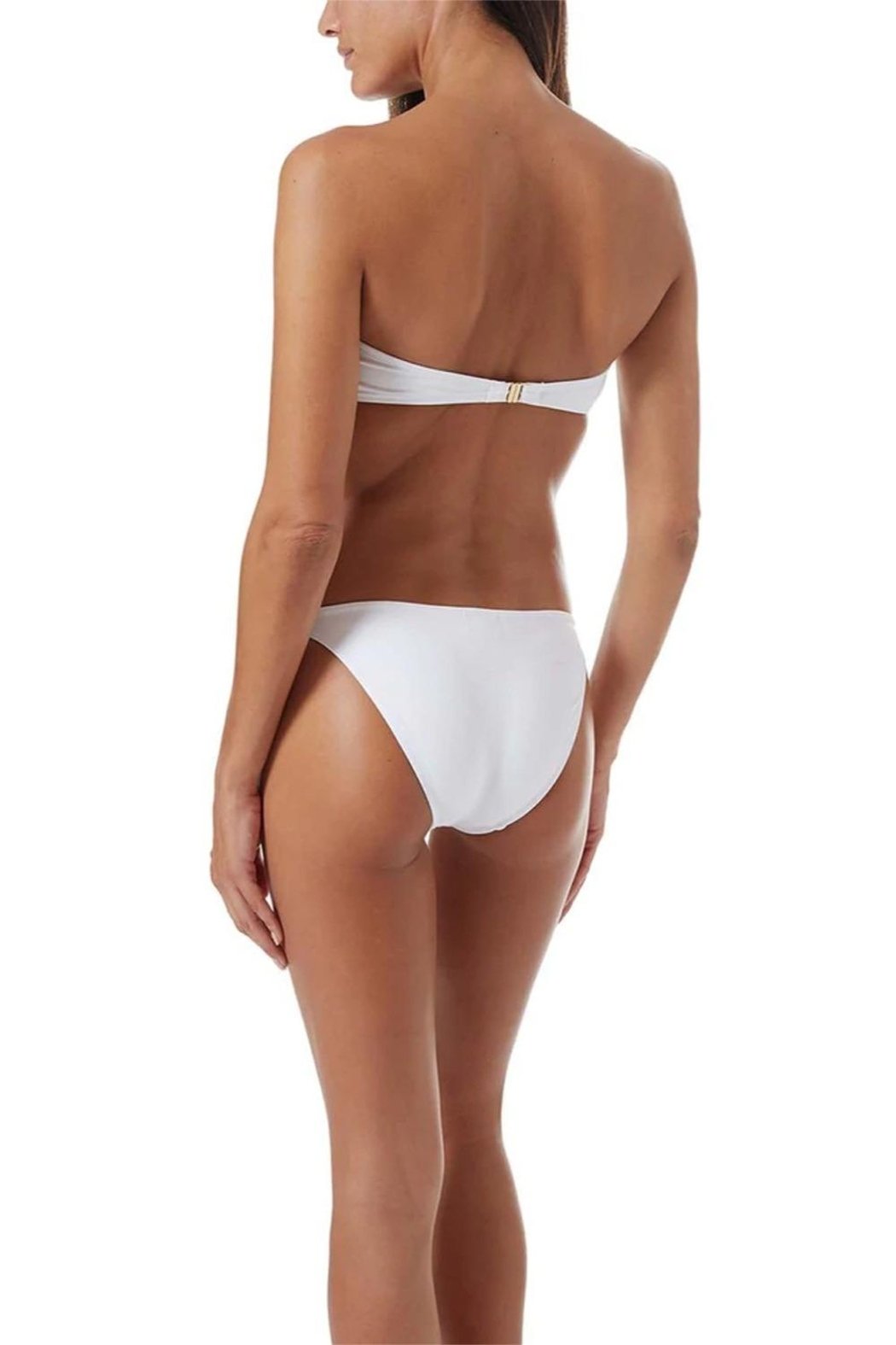 Taking inspiration from sleek, sporty silhouettes, the Ibiza Bikini offers effortless poolside elegance. In cool ‘White’ the bandeau top features a slit detail for understated glamour. Removable pads and straps give you the freedom to adapt this style to suit, while matching fixed side, hipster bottoms cement the style’s clean shape.
