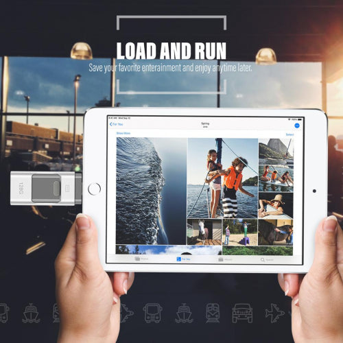 The iFlash Drive is the fastest and simplest way to free up space for your iPhone, iPad or Android device. You can take all the pictures you want without worrying about running out of space on your device. After setting up the mobile app, the drive backs up your files when you plug it in! Included encryption software lets you password-protect files, so you can share your content while keeping sensitive files secure across your device. You can even watch videos straight from the drive. External memory expansion for iPad / iPhone / Android Manage all your data directly on the iOS-devices