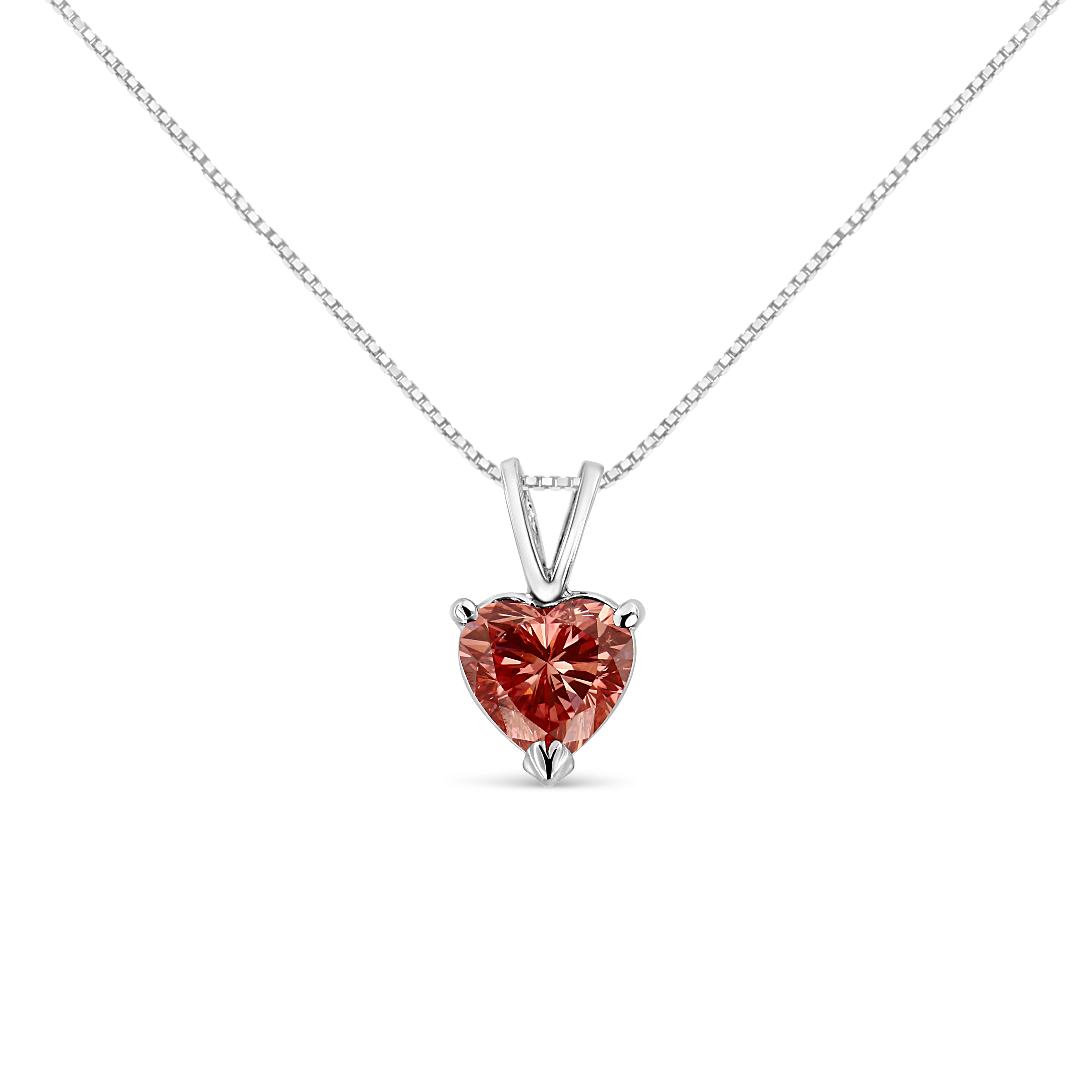 Igi Certified 14K White Gold Martini Set 1.00 Cttw Lab Grown Pink Heart Diamond Solitaire 18" Pendant Necklace (Pink Color, Si2 Clarity)
