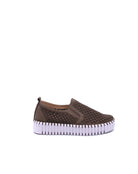 The Ilse Jacobsen Tulip 141 Falcon is a marvel of sustainable luxury. Its upper is crafted of recycled microfiber, with a delicate laser cut pattern, stitched to the outsole with recycled thread. The interior is lined with soft pigskin for a comfortable fit, allowing you to stroll in exquisite comfort and style.