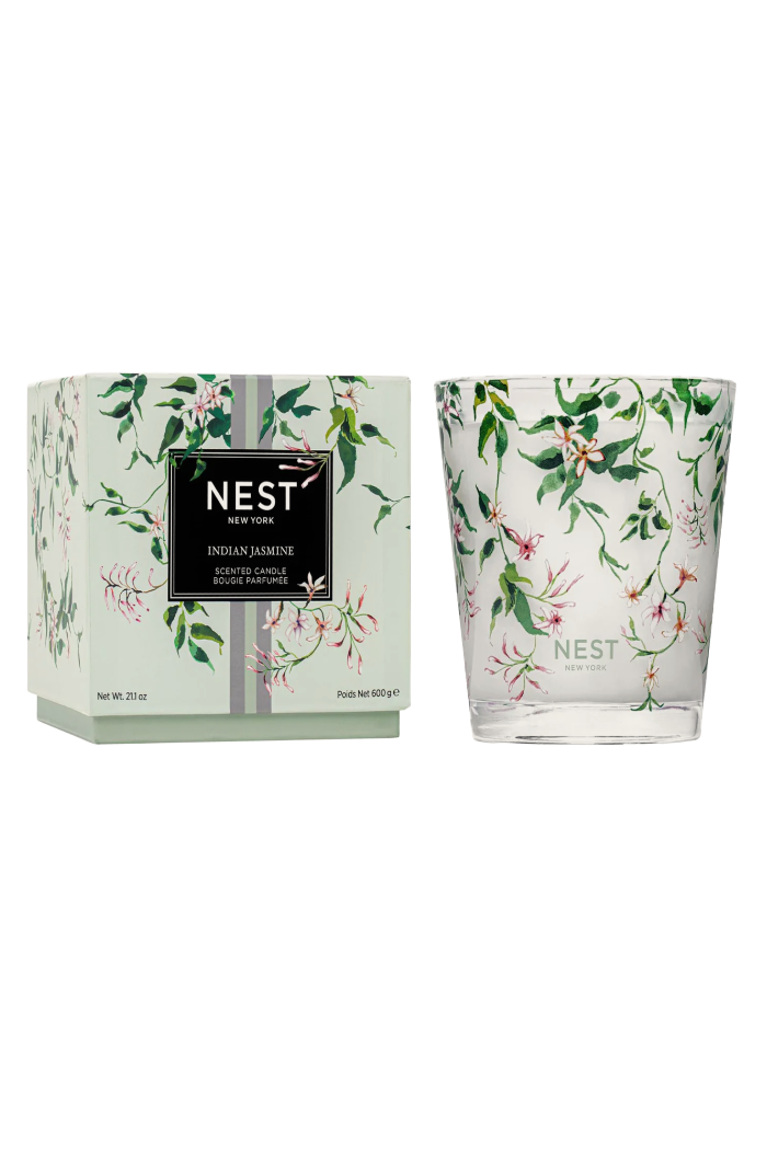 Immerse yourself in the lush jasmine fields of India with this scented candle featuring an intense jasmine absolute surrounded by bright red berries, sparkling bergamot, and spicy pink pepper. Housed in glass adorned with a watercolor illustration that brings the natural beauty of the region to life. This exquisitely fragranced candle is meticulously crafted with a proprietary premium wax formulated so the candle burns cleanly and evenly and infuses a room with exceptional scent.