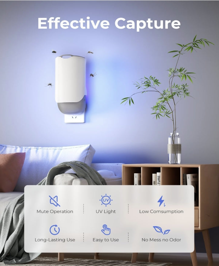- 【Baby & Pet Friendly】 This non-toxic plug-in bug trap uses physical technology, ensuring it’s safe for babies, pets, and the whole family. Perfect for use in nurseries, kitchens, and living spaces, it’s odorless, mess-free, providing a natural and effective solution to keep your home bug-free without compromising safety.