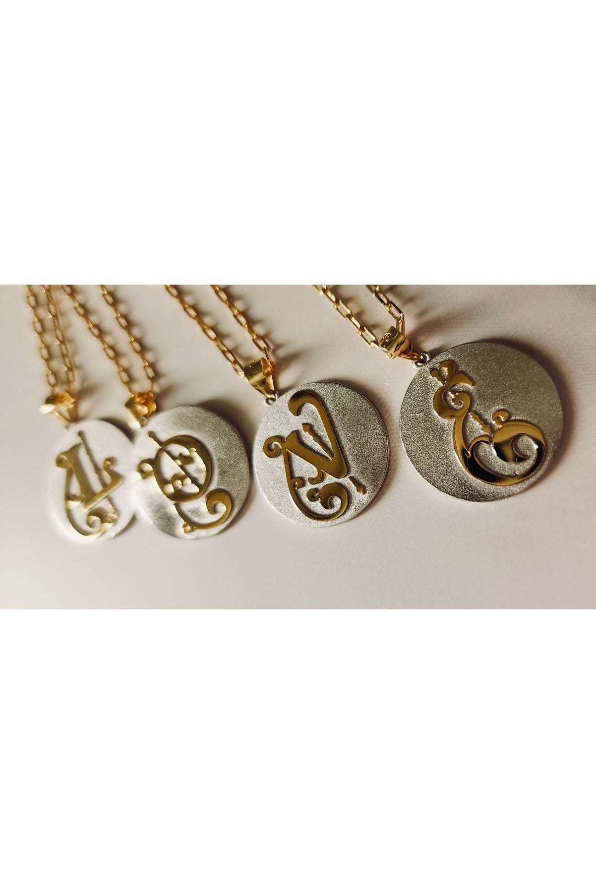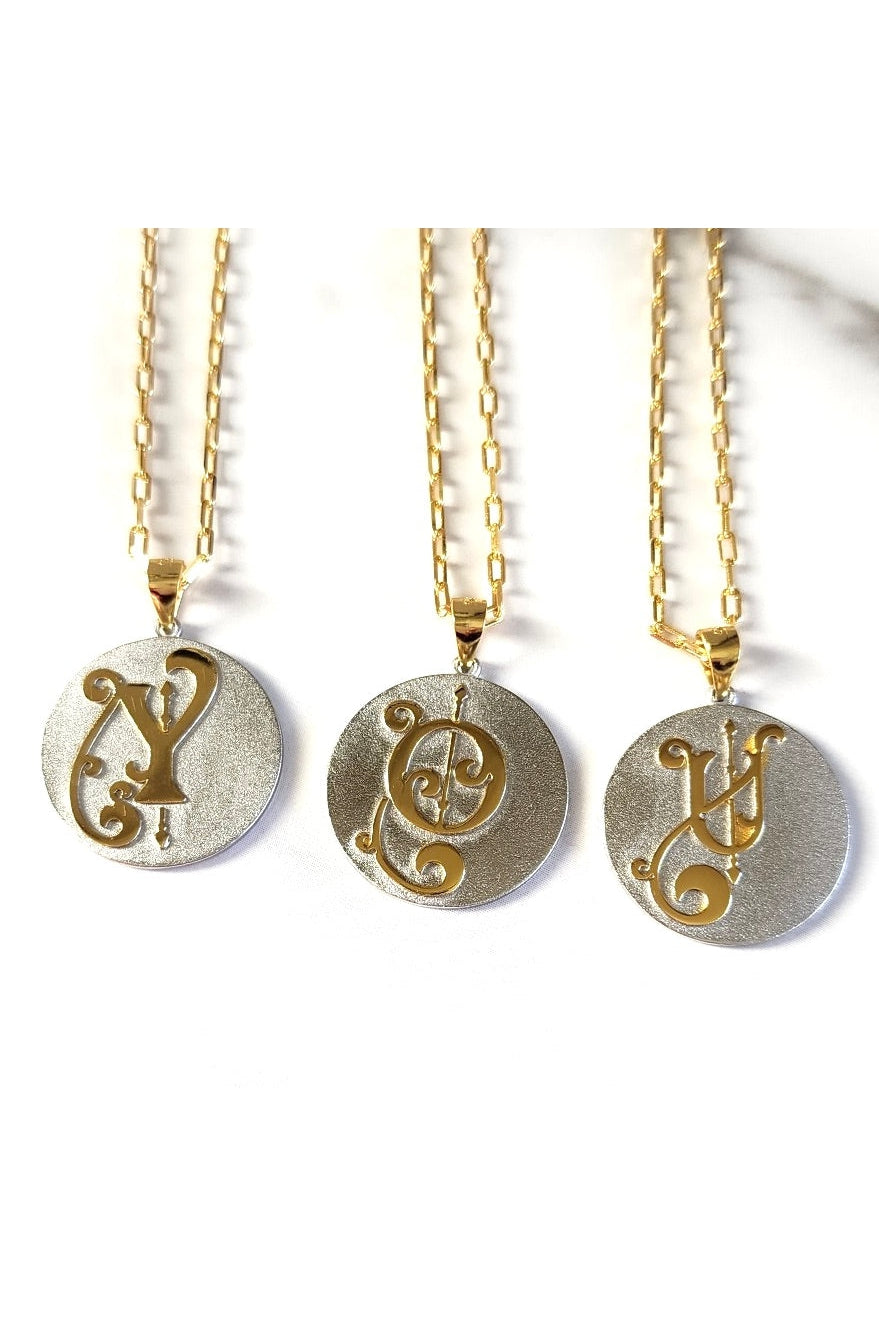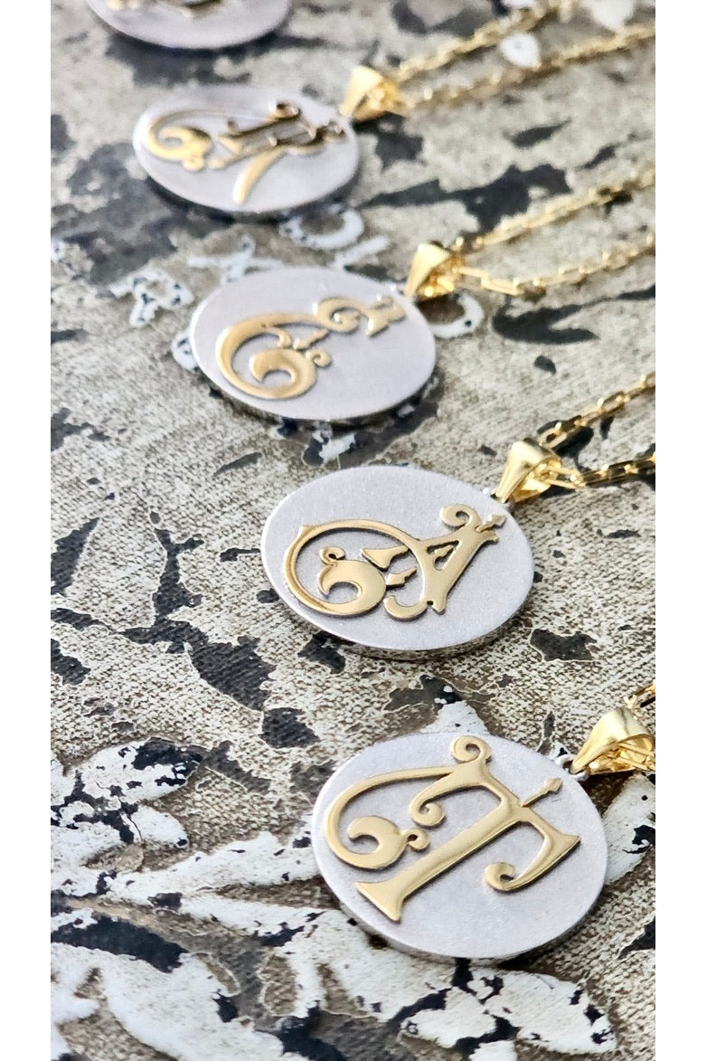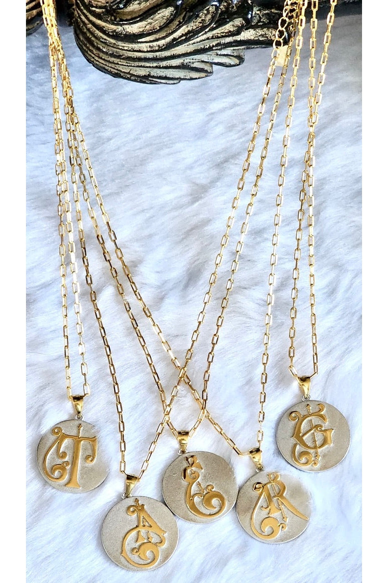 Old World Style Initial Alphabet Letter Necklace on Gold Chain