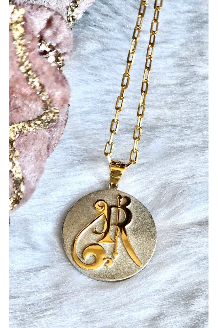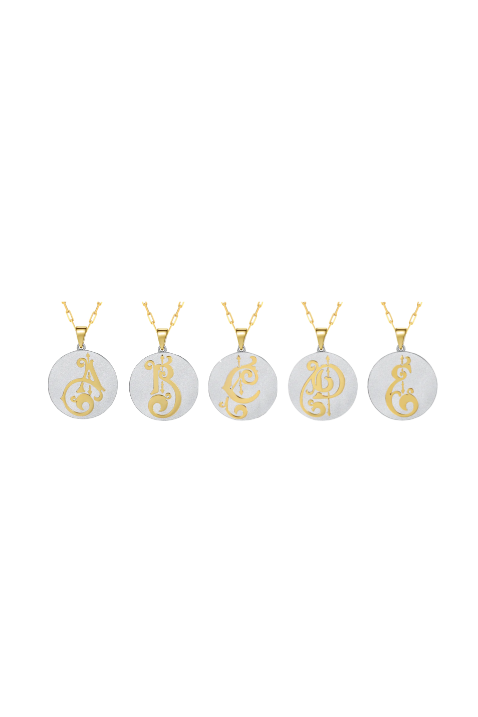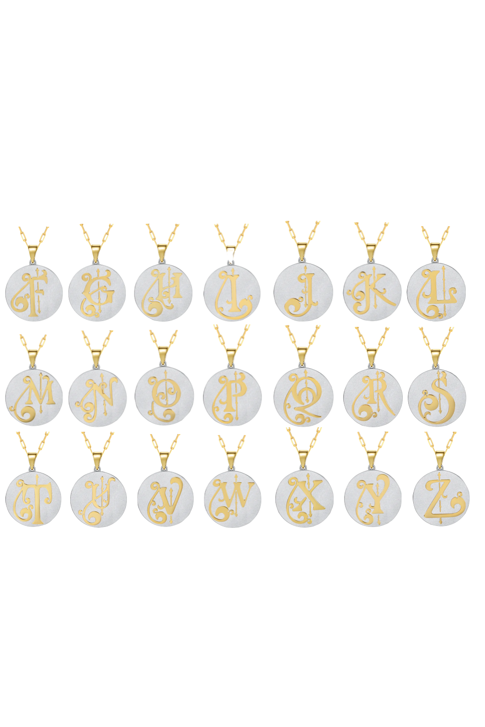 Old World Style Initial Alphabet Letter Necklace on Gold Chain
