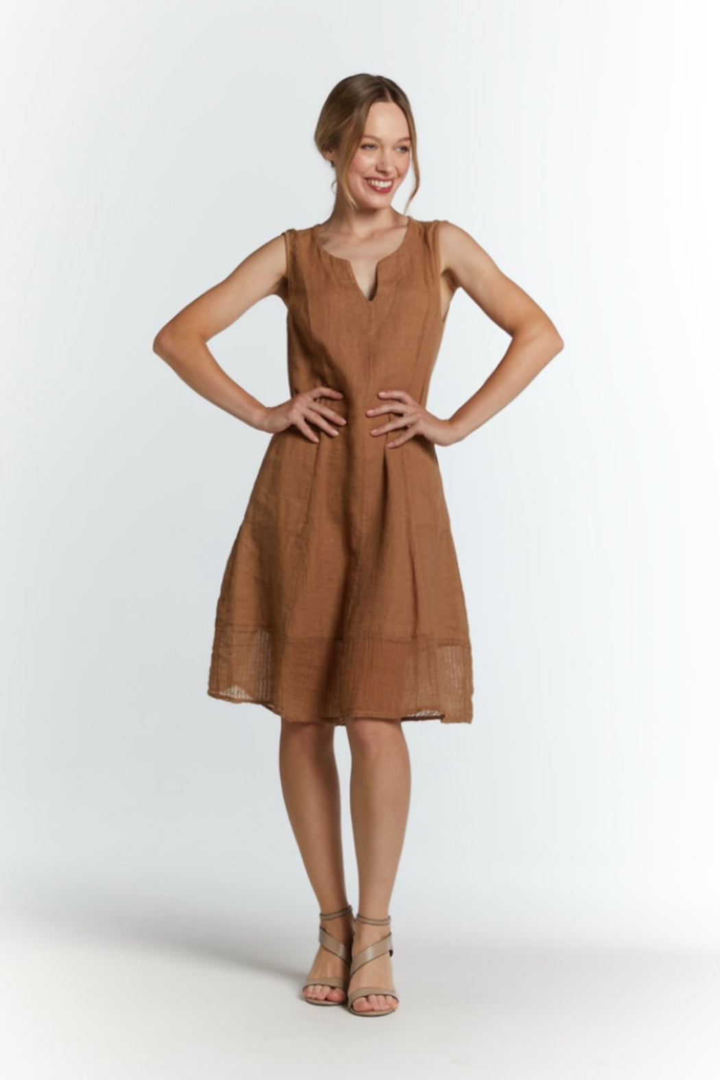 Timeless and easy to wear, from Inizio this Notch-Neck Linen Dress blends comfort with understated elegance. Made in Italy from a breathable blend of 95% linen and 5% cotton, this sleeveless dress features a flattering A-line shape and a unique notched neckline that adds just the right amount of detail.