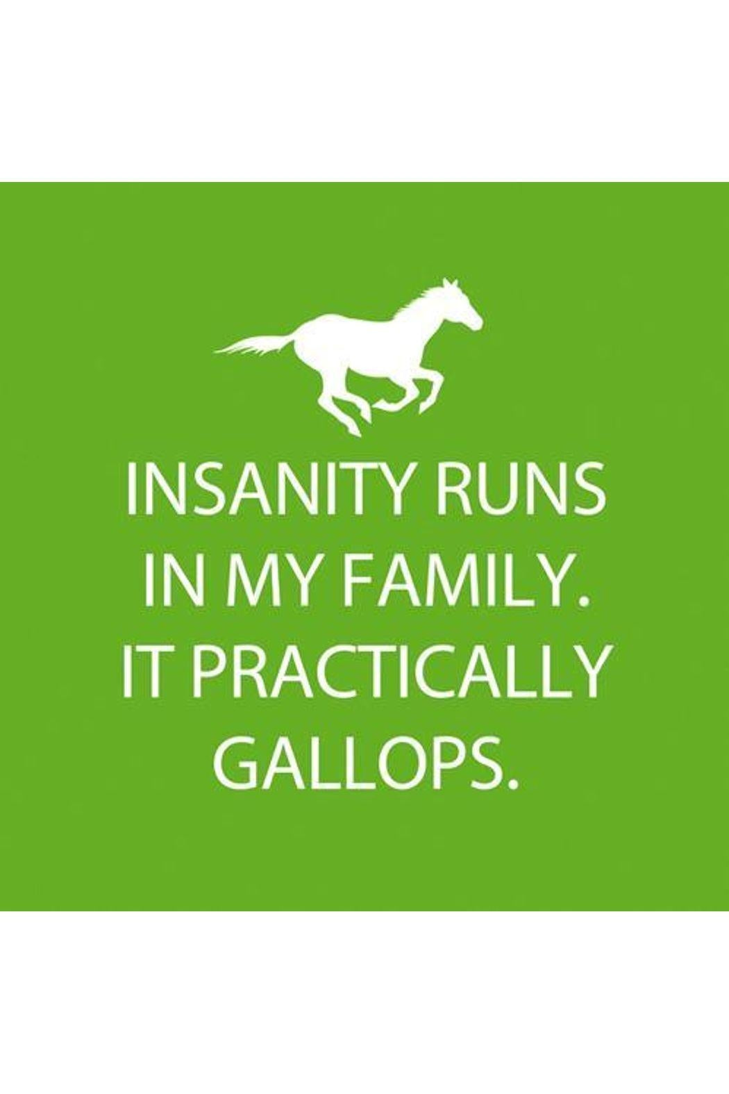 From Paperproducts Designs “Insanity Runs In My Family. It Practically Gallops.” Includes 20 napkins. 3 ply napkins. Made in Germany.