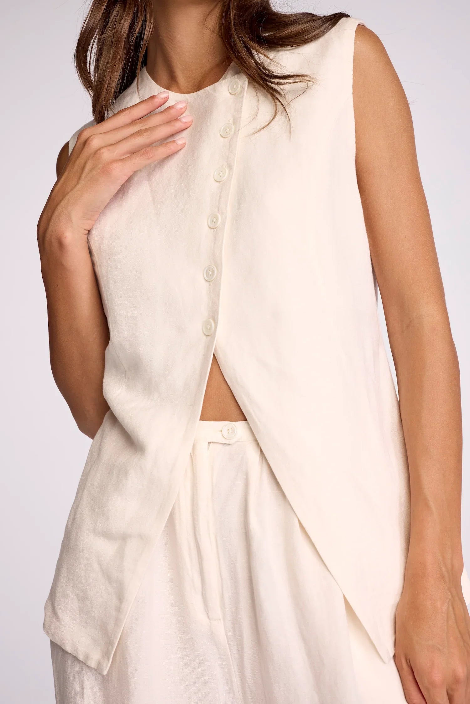 Introducing the Isolde Vest, the perfect companion for elevated chic looks while staying cool. It's asymmetrical design and button front create a stylish open V shape in the center. Pair with the Tristan Pants for the set of Spring