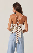 This top is so cute and the back is our favorite!! The brown and white polka dot is such a great print and the bow in the back is the best detail!!
