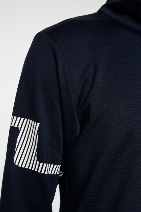 Stay stylishly comfortable with the J. Lindeberg Heath Strike Mid Layer. Its structured silicone bridge logo adds a touch of quirkiness, while the honeycomb fabric keeps you dry and snug. Fast-drying and moisture-wicking, this layer is perfect for any weather.
