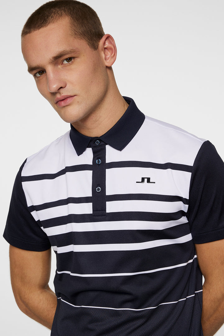 Get ready to elevate your golf game with the J.Lindeberg Olof Polo. With a sleek shell collar, 3-button placket, and stylish all-over stripes, you'll be the most stylish golfer on the course. Plus, the wind-block fabric, 4-way stretch, and wicking technology will keep you comfortable and focused on your game. Don't just play golf, own it!
