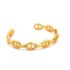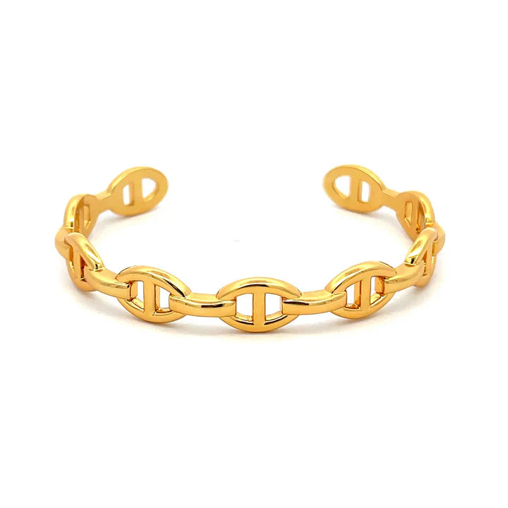 Introducing the Open link cuff - a stylish and durable Brass jewelry piece perfect for any occasion. With elegant Gold plating and adjustable design, this cuff is versatile and convenient for all wrist sizes. Its durable and hypoallergenic construction makes it suitable for any event, from special events to running errands.
