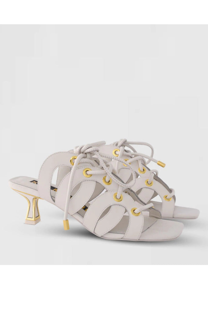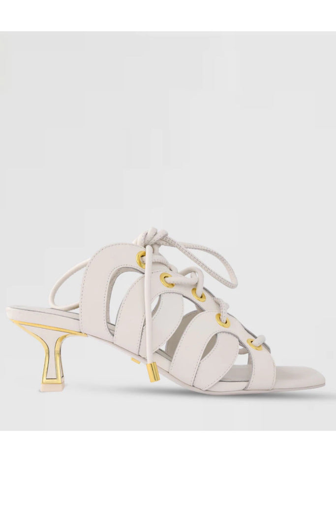 Lace yourself for high-summer fun with the Jaffa kitten heel. In soft, white leather this design features lace-up detailing and a small heel that's ideal for cropped denim.