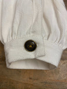 - Brass button with loop button wrist closure