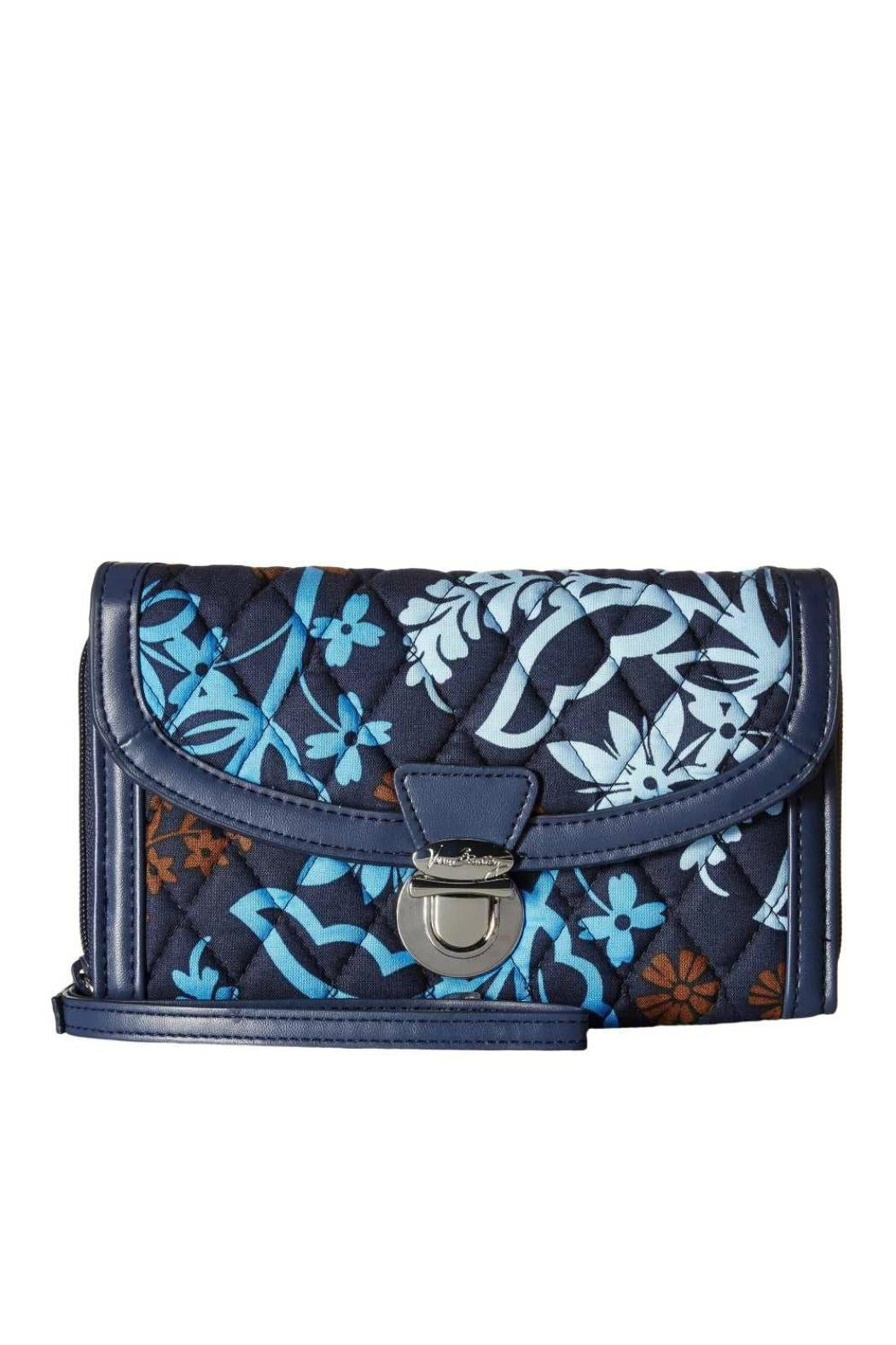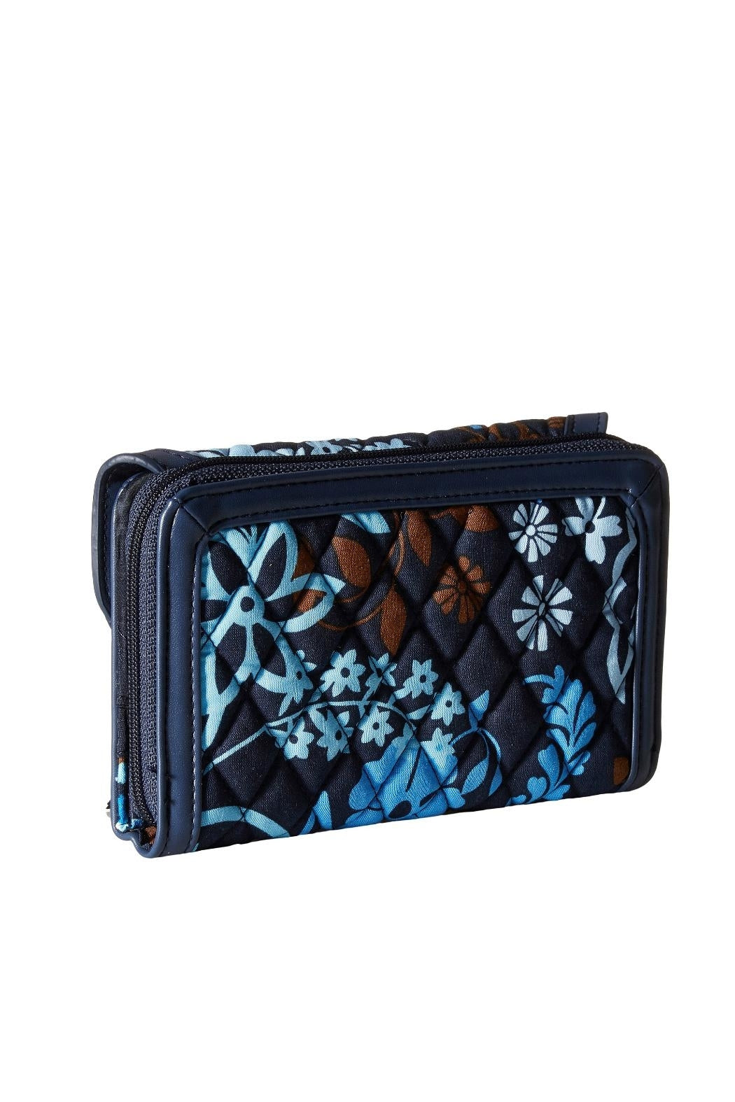 Meet the Vera Bradley Ultimate Wristlet in the Java Floral pattern. There is room for everything in this wristlet; your credit cards, cash, ID, coins, and phone. We think this is the BEST wristlet Vera Bradley has ever made, and we know you're going to love it! The front push lock-closure compartment has 10 card slip pockets, two ID windows, and a bill pocket. Zip compartment has a divided interior with one bill pocket, two pleated compartments, and six card slips. Click on "Mimi's Gift Gallery" on this page to find other bags and accessories in the Java Floral pattern. Dimensions are 7 ¼" wide x 4 ¾" high x 1 ½" deep with a 6" vegan leather wrist strap.