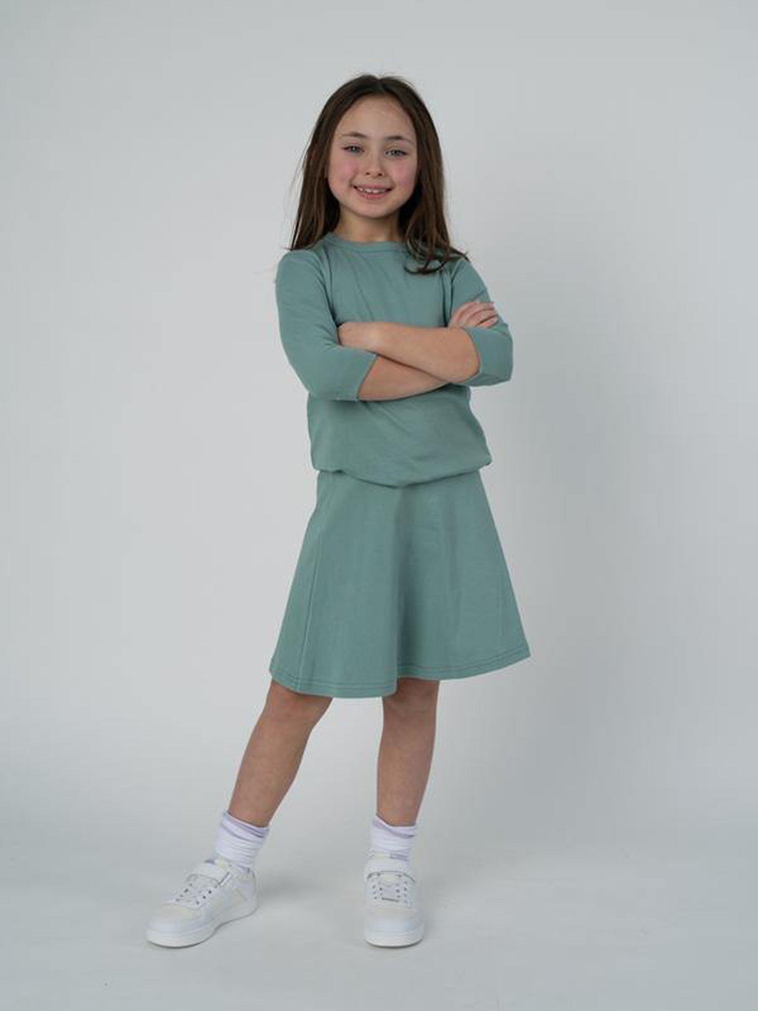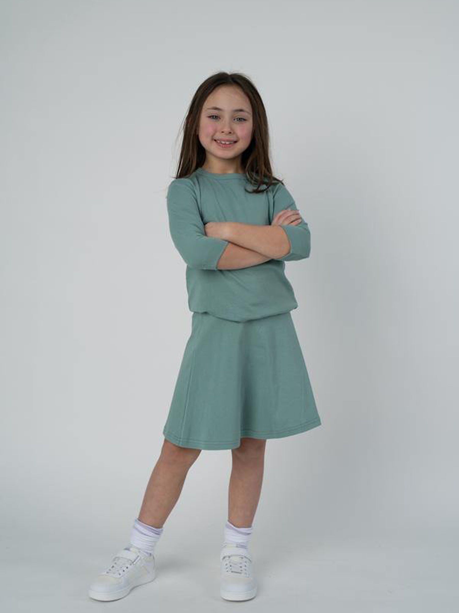 - 3/4 sleeve Jay Basics kids crewneck t-shirt with exposed stitching