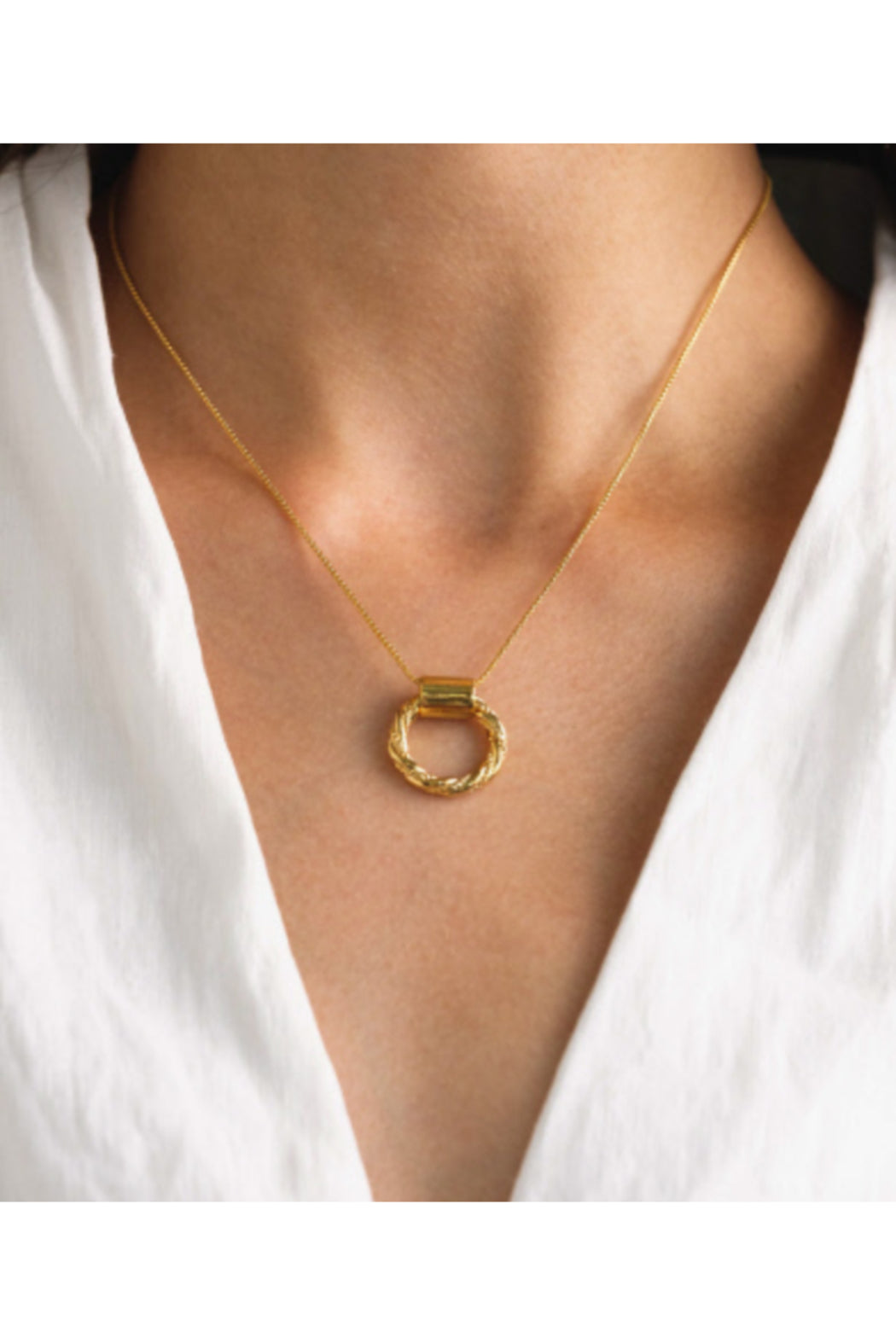 Subtle gold-plated chain. Twisted ring centre. Perfect for layering or standing alone.