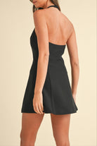 Make a statement at your next event with the Jewel Bow Slit Halter Mini Dress. This sophisticated mini dress features a sleek solid color design complemented by a daring front slit, exuding confidence and style. The highlight of this piece is the trio of rhinestone-adorned bows that add a touch of sparkle and femininity. The adjustable halter neckline, secured with three snap buttons, ensures a comfortable and customizable fit, allowing you to dance the night away with ease.