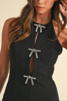 Jewel Bow Slit Halter Mini Dress – Elegant Rhinestone Embellished Party Dress
