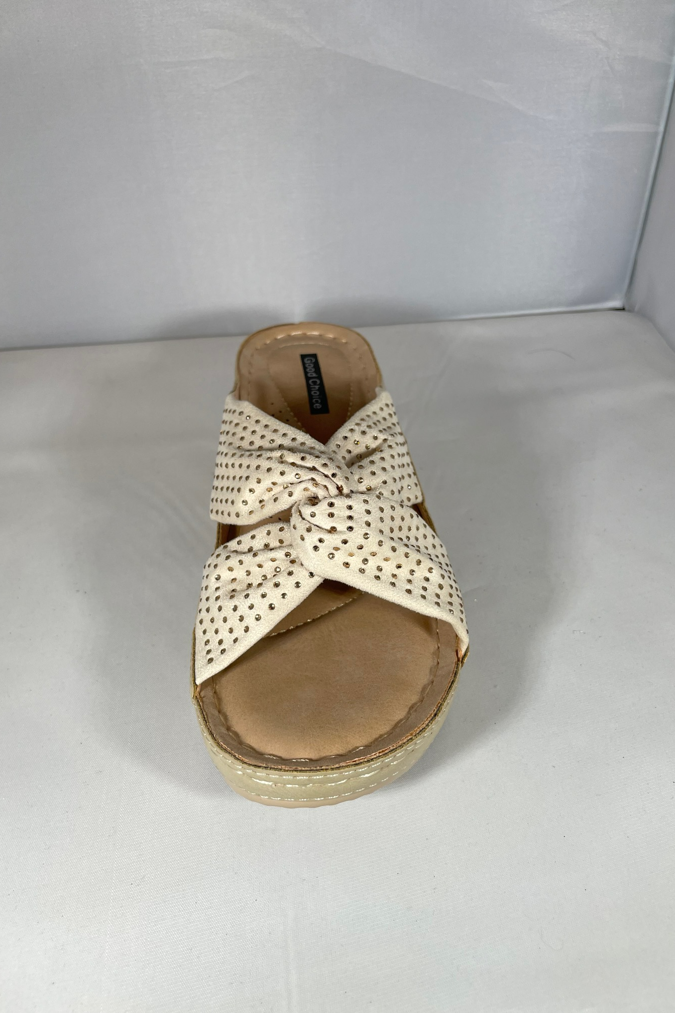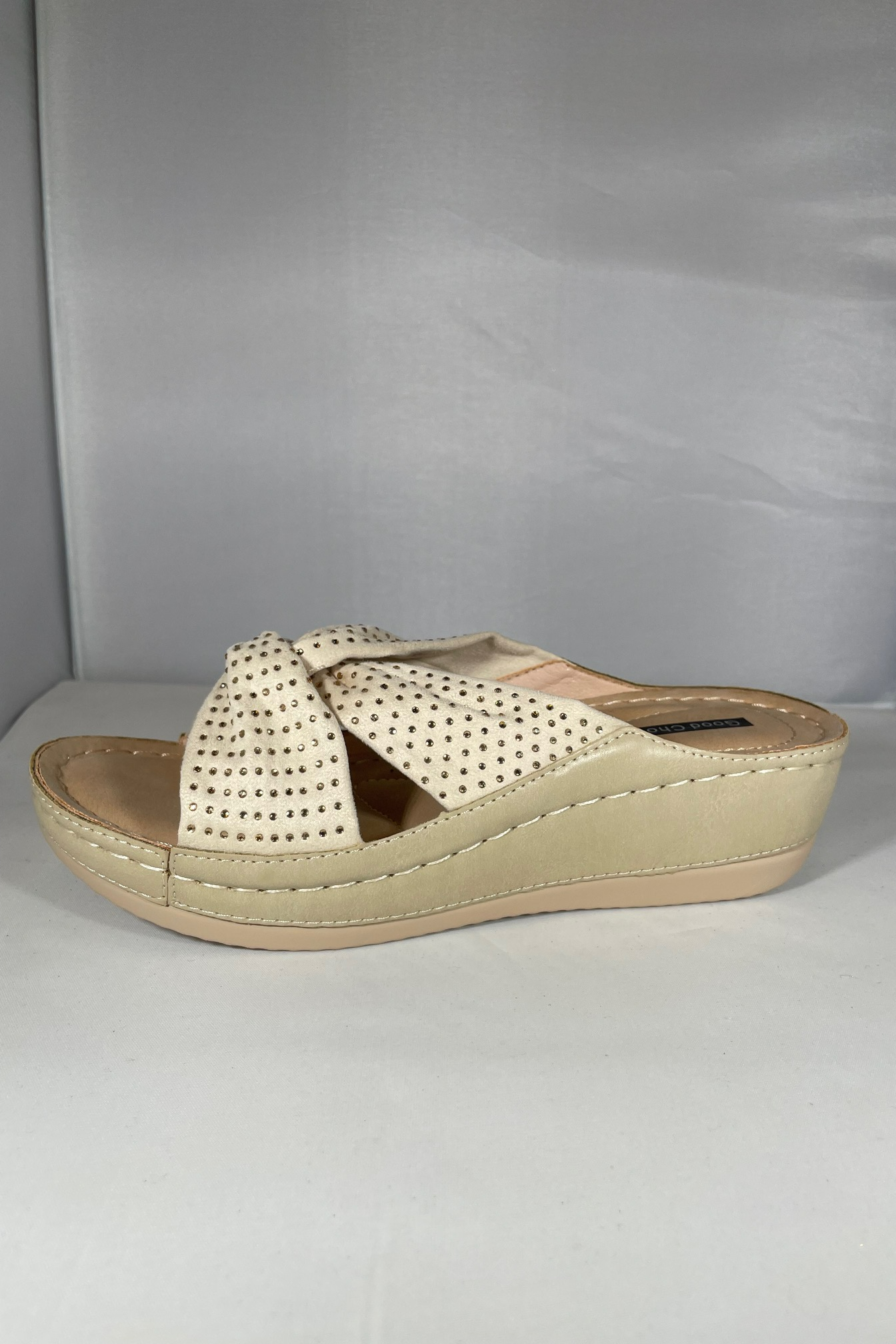 This is the perfect sandal for any occasion. They are super comfortable and easy to wear all day. They are a fun gold color.