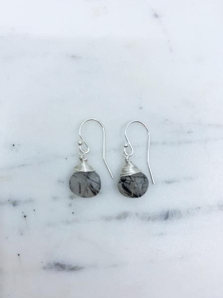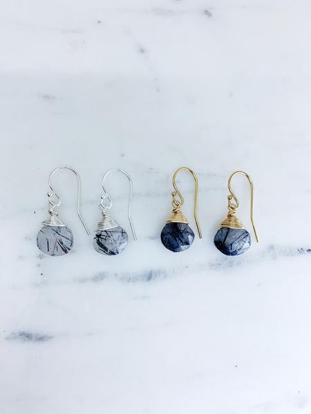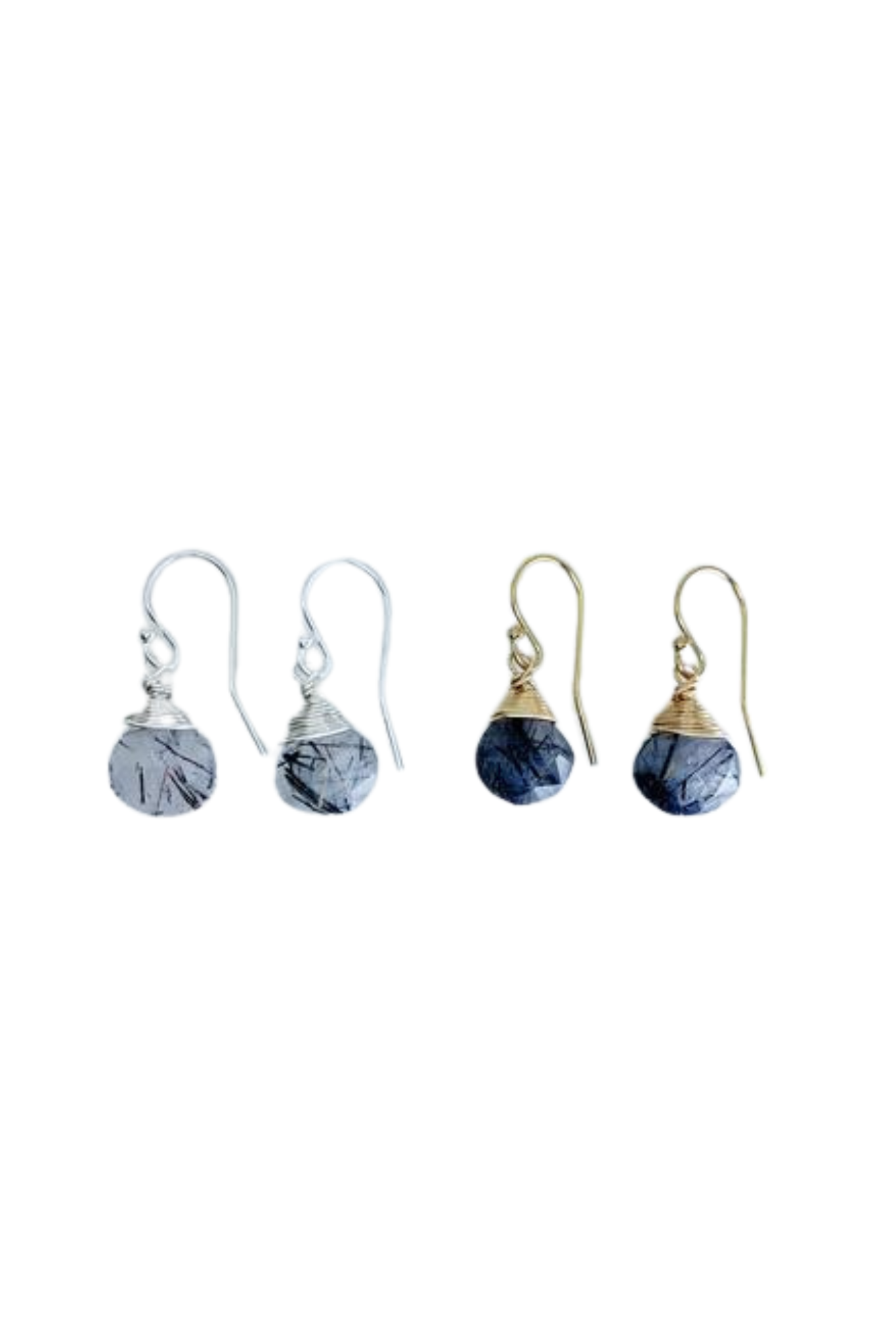 Gold or silver dangle earrings with a hand-wrapped Black Rutilated Quartz drop stone.