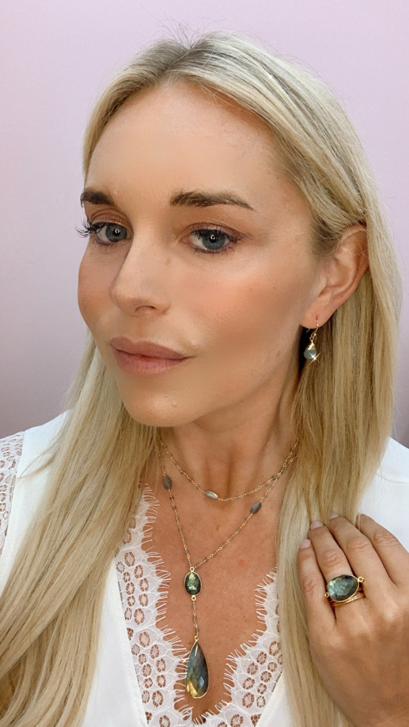 Gold or silver dangle earrings with a hand-wrapped Labradorite drop stone.