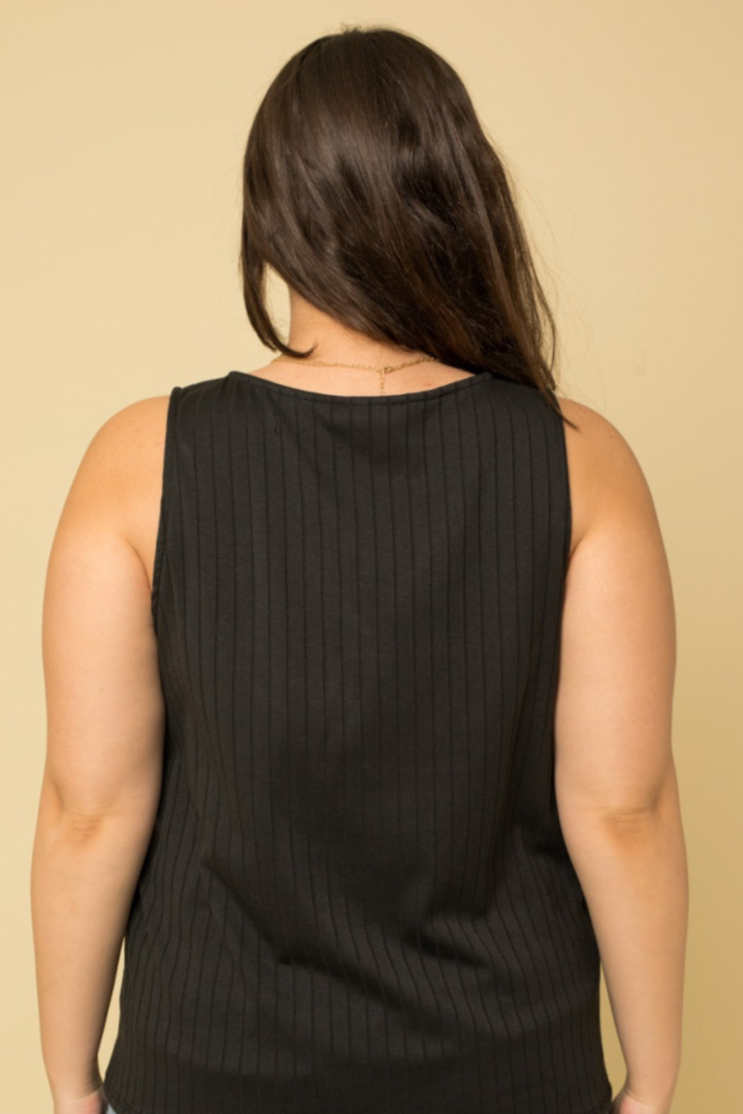 Comfortable ribbed two piece set. Wide leg pant with elastic waist and side seam pockets. Sleeveless v-neck top. Model is wearing a size small. Refer to measurements for your perfect fit. Bottoms: Waist measurements relaxed; 1X 36", 2X 38", 3X 40". Waist to hem; 1X 45.5", 2X 46", 3X 46.5".. Inseam; 1X 32", 2X 32.5", 3X 33". Rise; 16". Top, across chest measurements; 1X 23", 2X 24", 3X 25". Top body length; 1X 25.5", 2X 26", 3X 26.5".