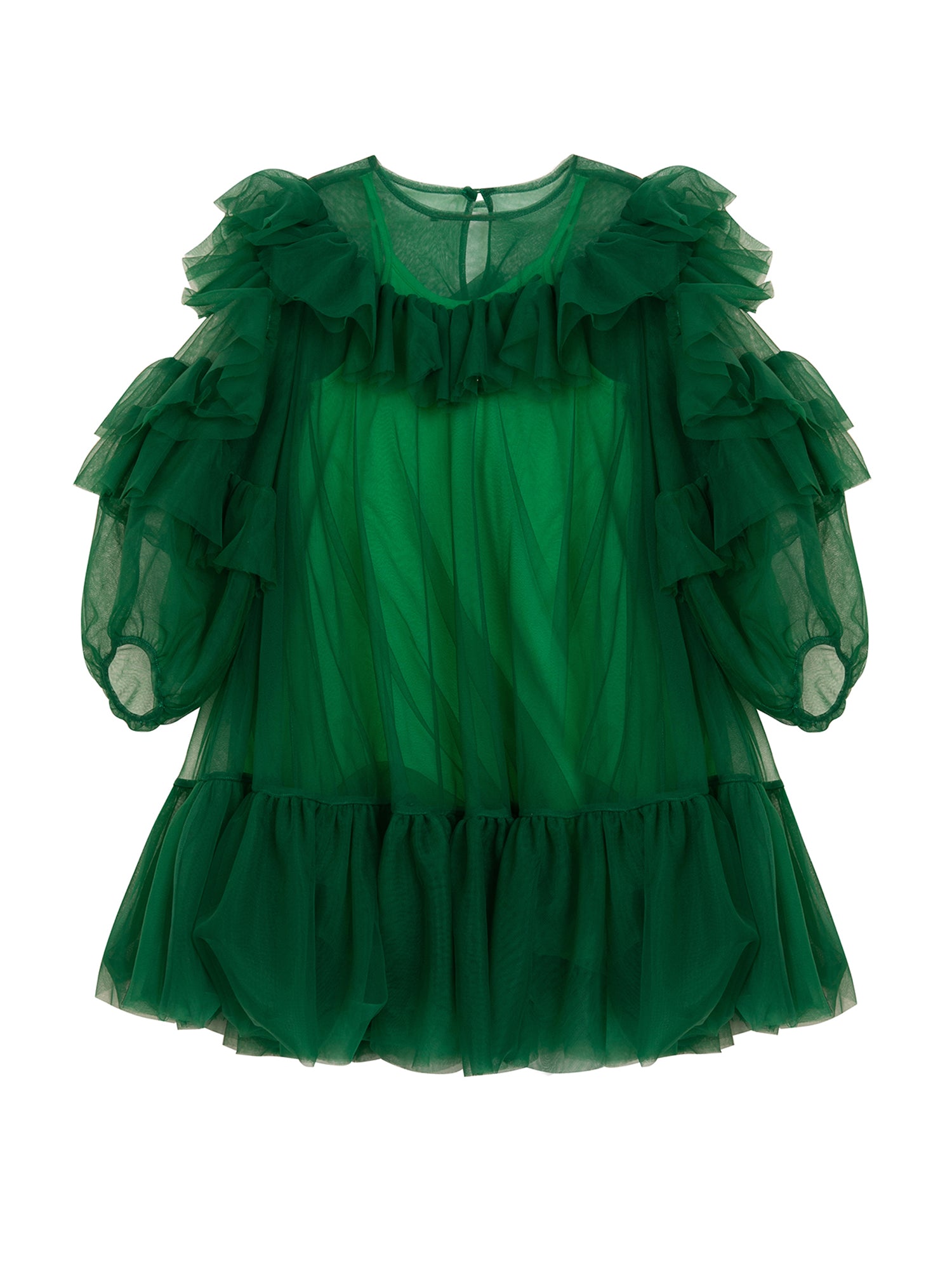 •LOOK: Your little princess will stand out in this formal and fun party dress. Layered and tiered through the body and sleeves. Wear with the available matching cami for a no-brainer pulled together look. Crew style neck. Button/keyhole closure.