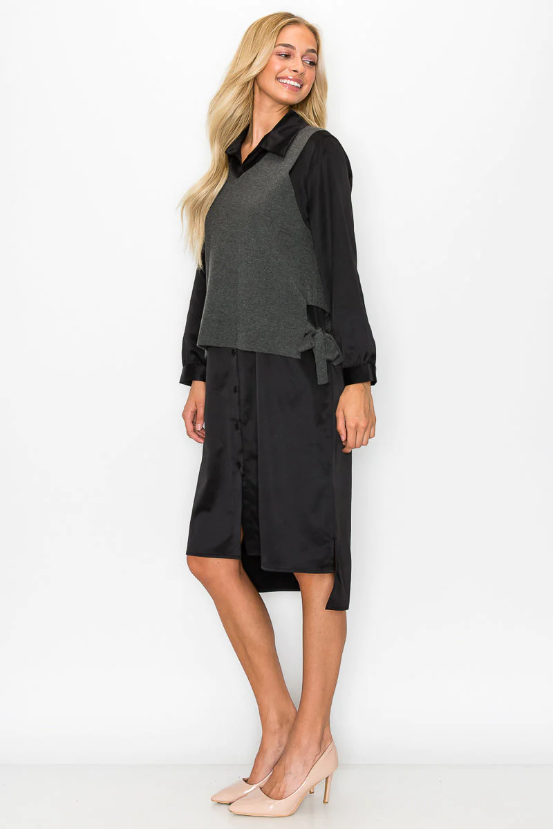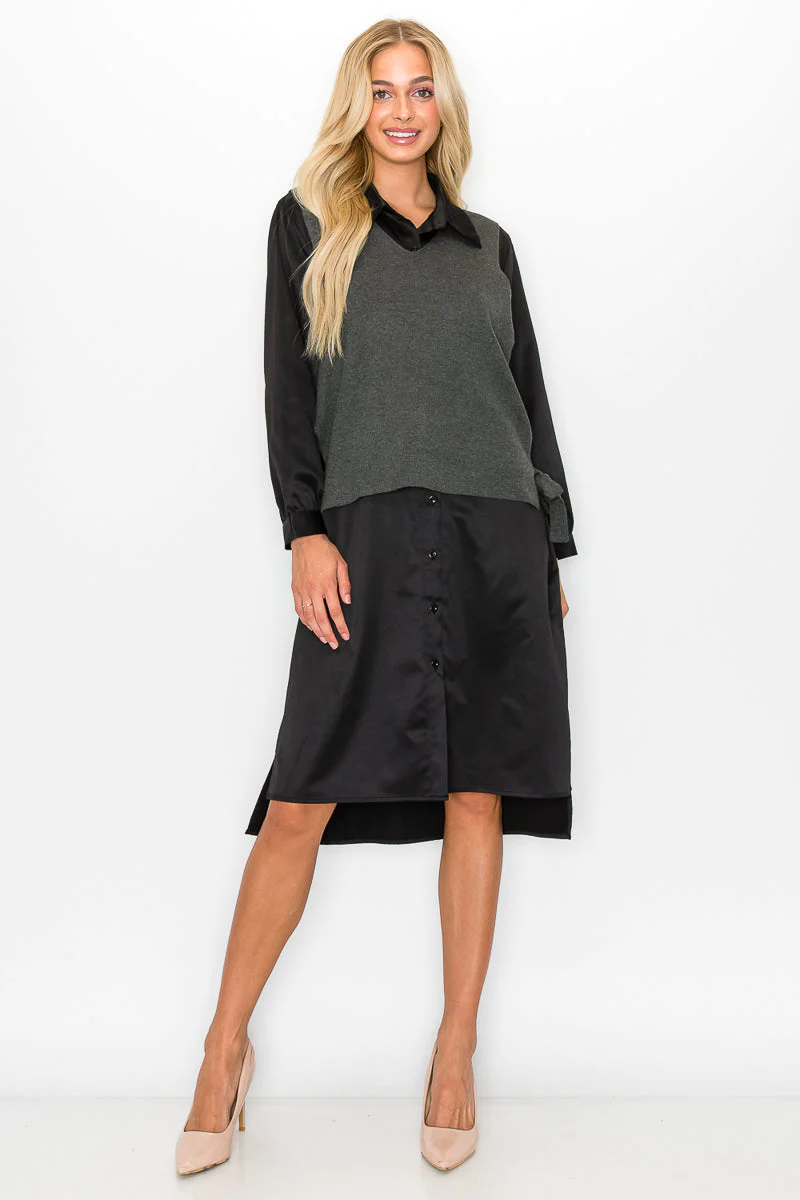 Woven Shirt Dress with Detachable Sweater Knitted Vest