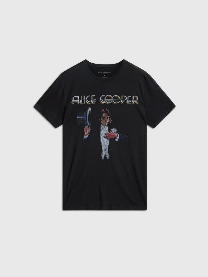 Take a trip down memory lane with our John Varvatos Alice Cooper Top Hat Tee. Made from worn burnout fabric, this tee captures the vintage vibe of the iconic 1975 album 'Welcome to My Nightmare'. Featuring haunting artwork and the album's title on the back, this tee is a must-have for any fan of rock and roll history.