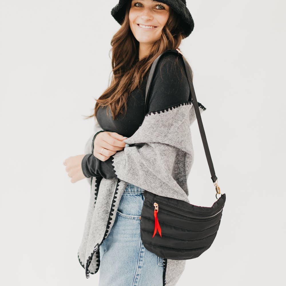The Jolie Puffer Belt Bag is another addition to our 3 Sisters Collection! This collection is inspired by the unbreakable bond shared between the owner/founder of Pretty Simple and her 2 sisters. These bags are marked with three signature studs and will complete outfits, catch eyes, and remind wearers of the incredible connection to their own sisters, whether through blood or by choice. You can see it in our inspiration and mission.