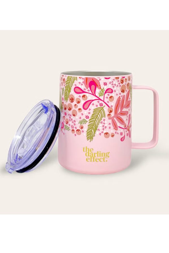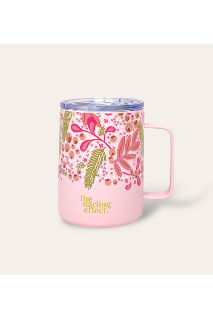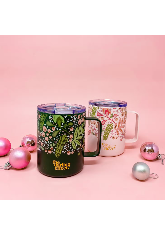 NEW! Celebrate the holidays, the darling way! New to our shop are insulated mugs. Great for keeping your drink warm during those cold days, and for on the go. You'll be reaching for this mug this holiday season!