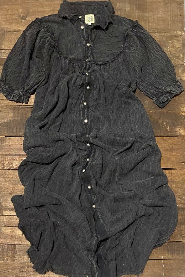 Be a wave-maker with the Joplin Evening Waves Duster! This collared, button-down style comes with half-sleeve and sleek monochrome vertical stripes in the fabric. Step up your style and wear it as a dress or open it as a duster for a trendy look! Dare to be different and make waves with Jaded Gypsy!