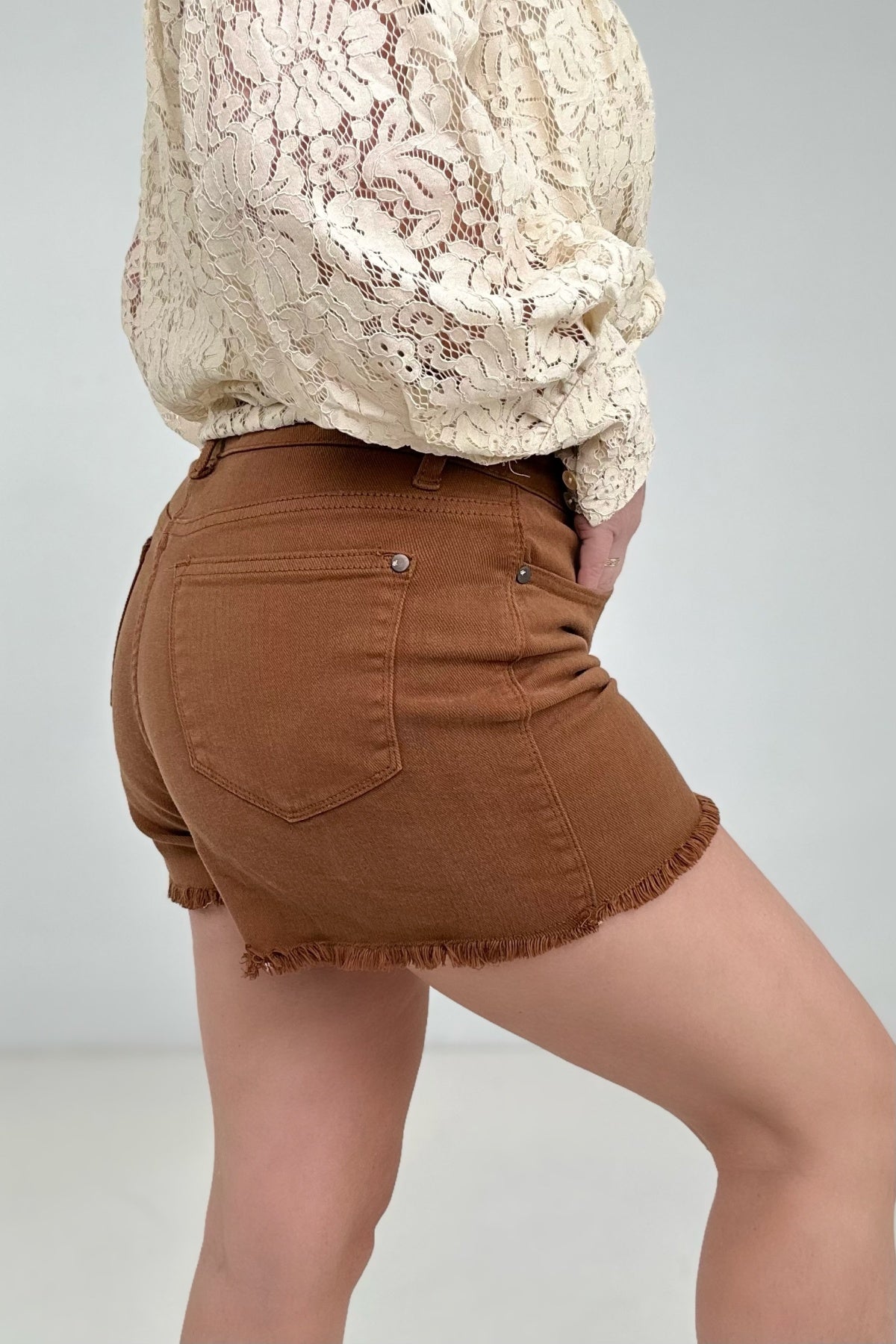 Judy Blue "Fawn" Mid-Rise Cut Off Shorts