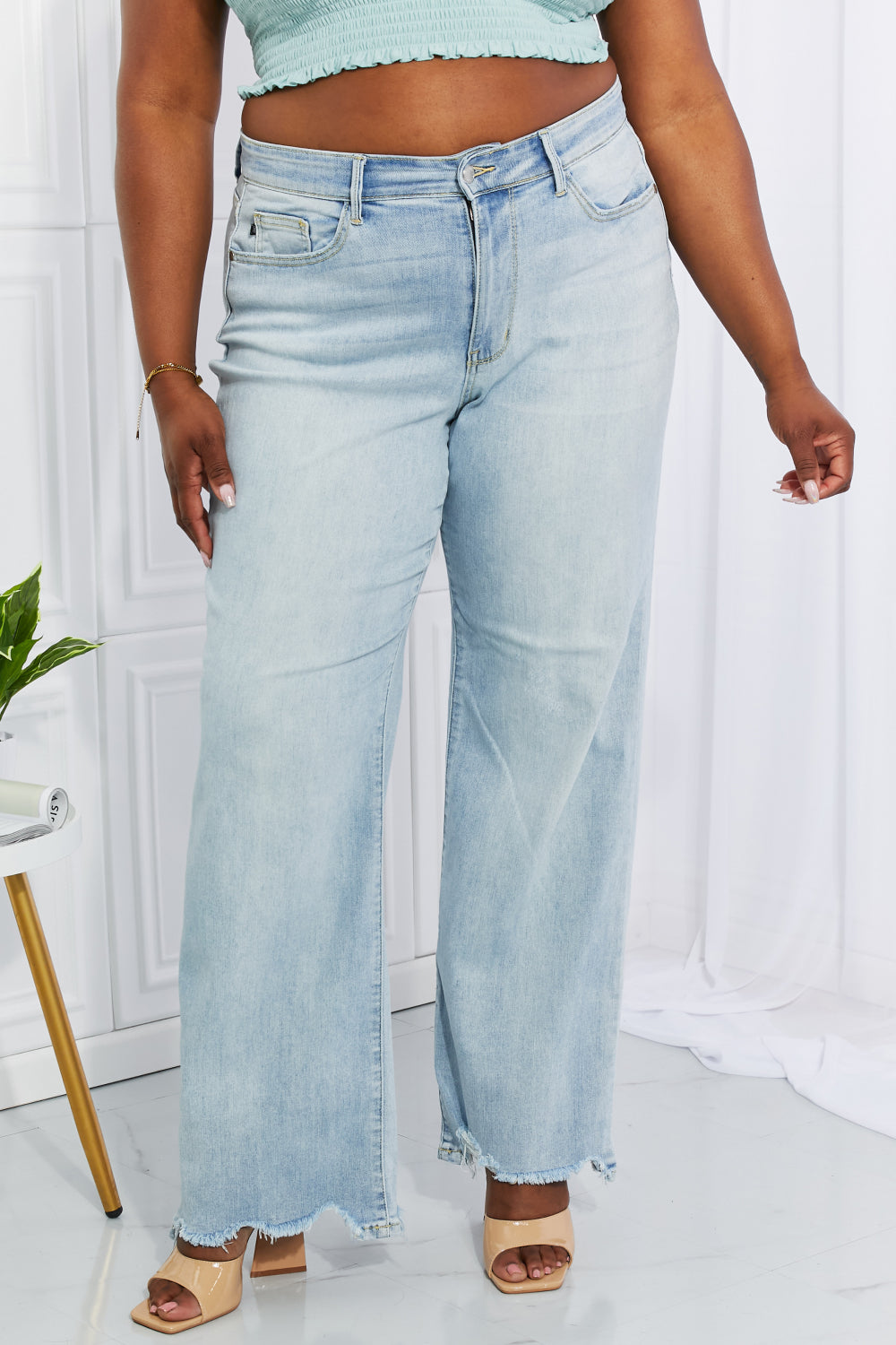 Judy Blue Full Size Cameron High Waist Destroyed Hem Straight Jeans