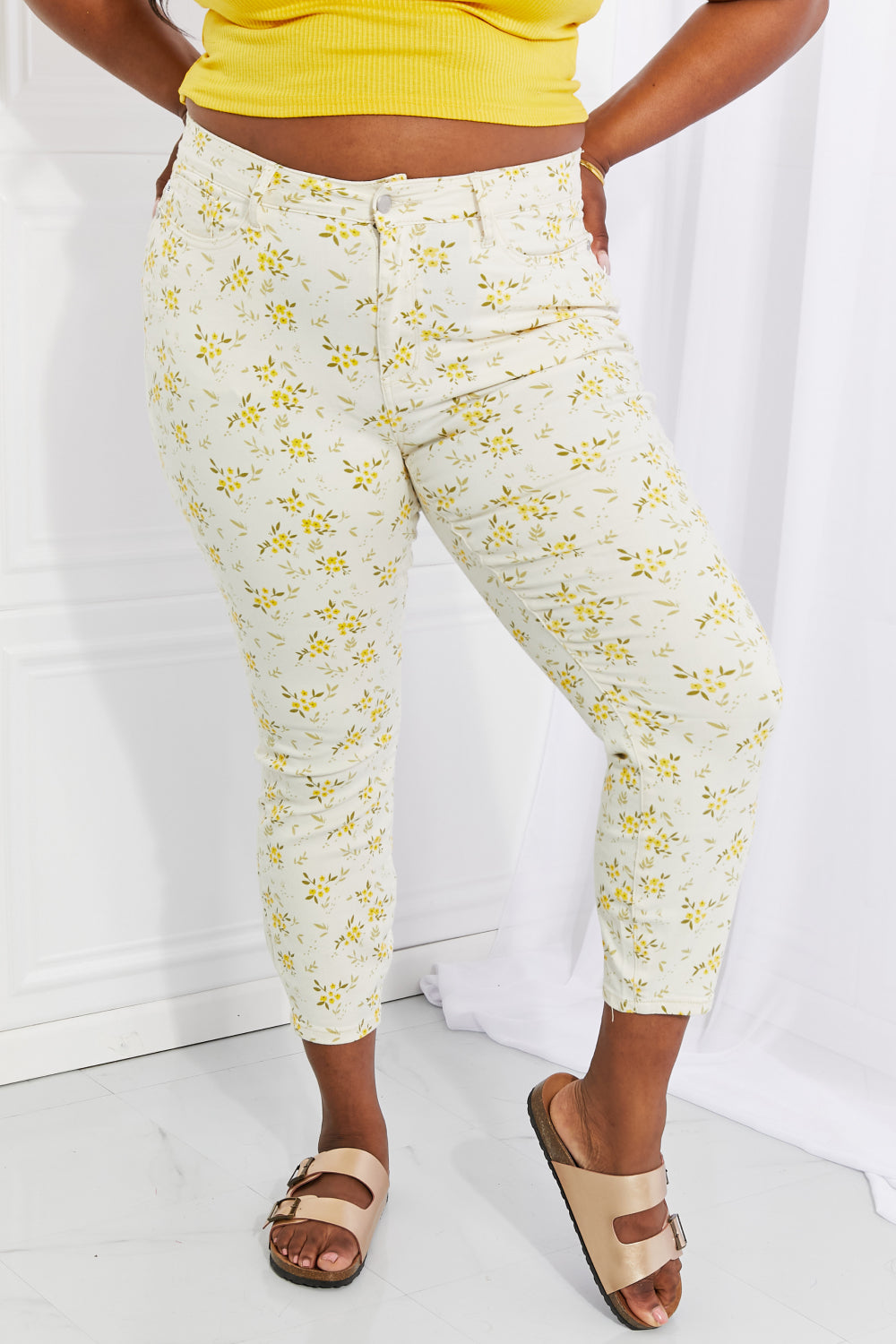 Judy Blue Full Size Golden Meadow Floral Skinny Jeans