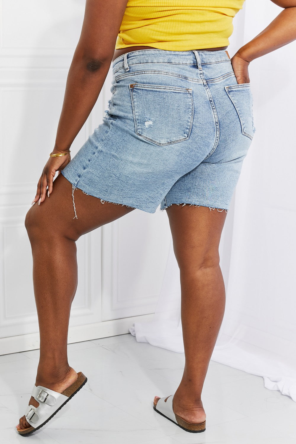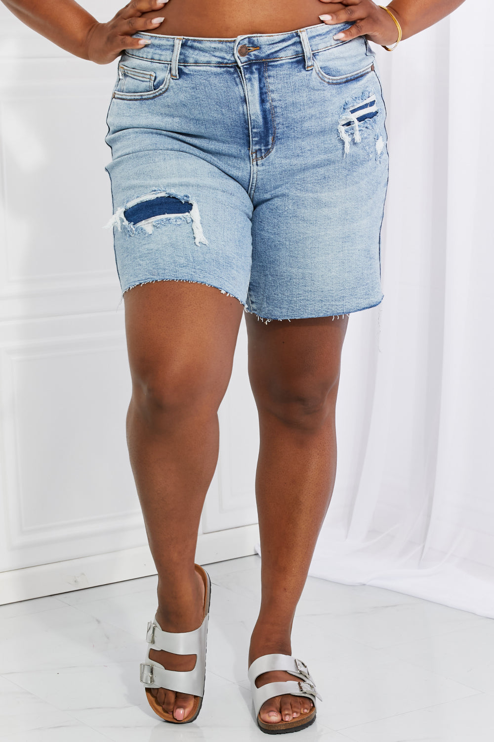 Judy Blue Hallie Mid-Length Denim Patch Shorts