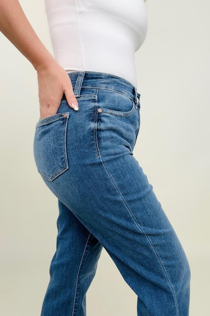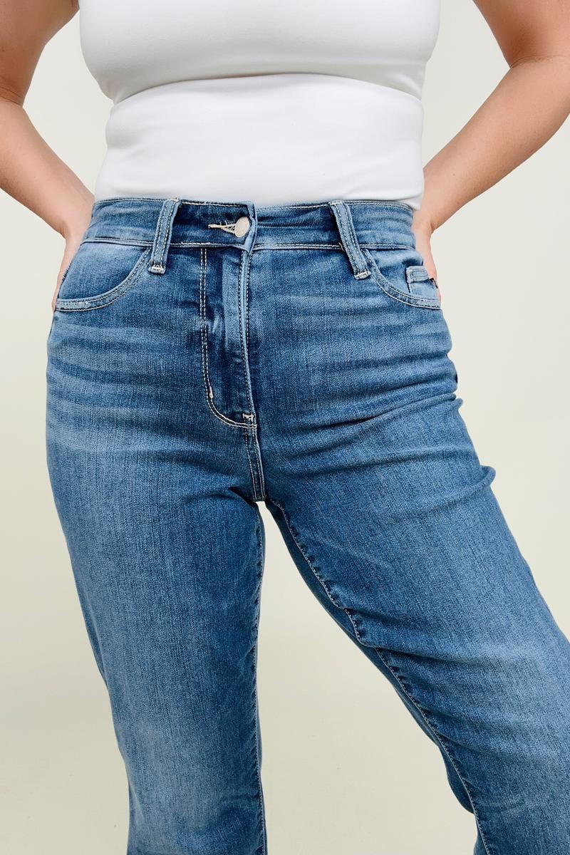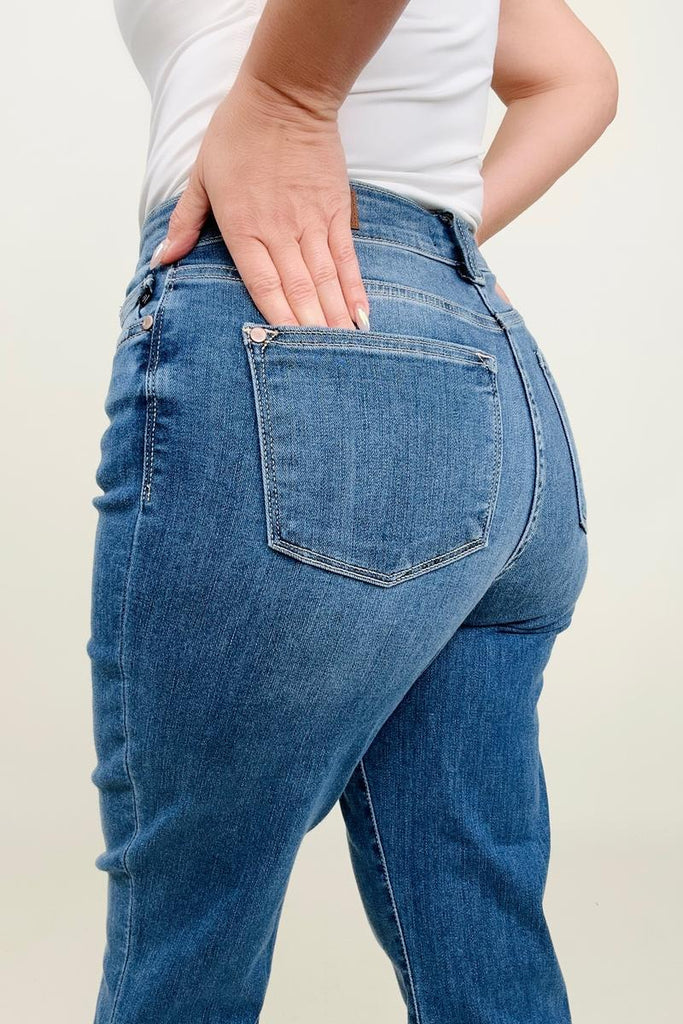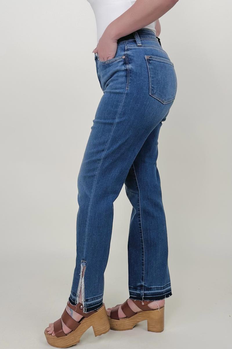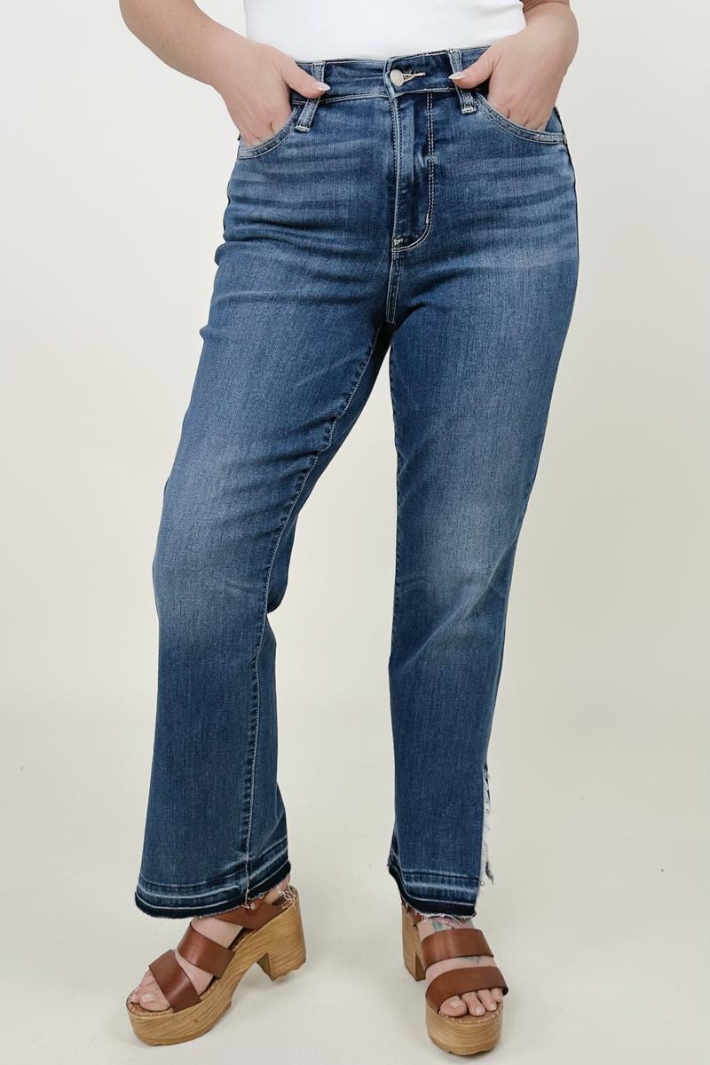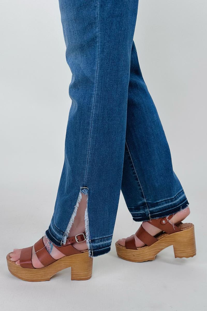 Judy Blue High Waist Fray Slit Release Hem Straight Jeans