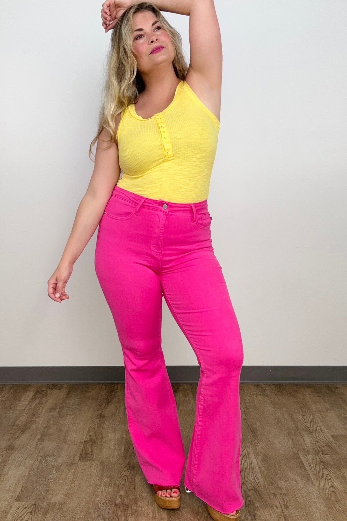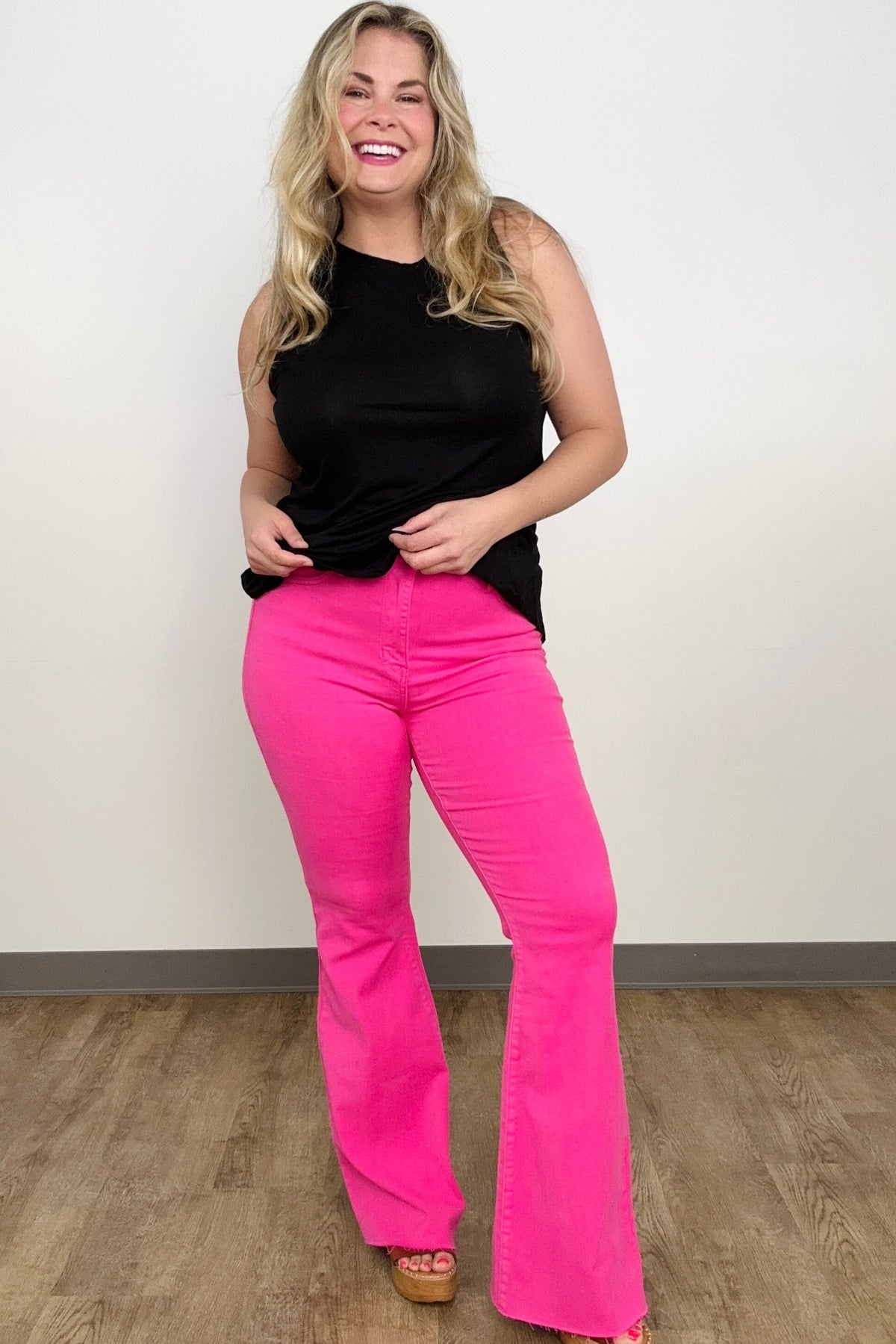 Judy Blue High Waist Garment Dyed Cut Hem Flare Jeans