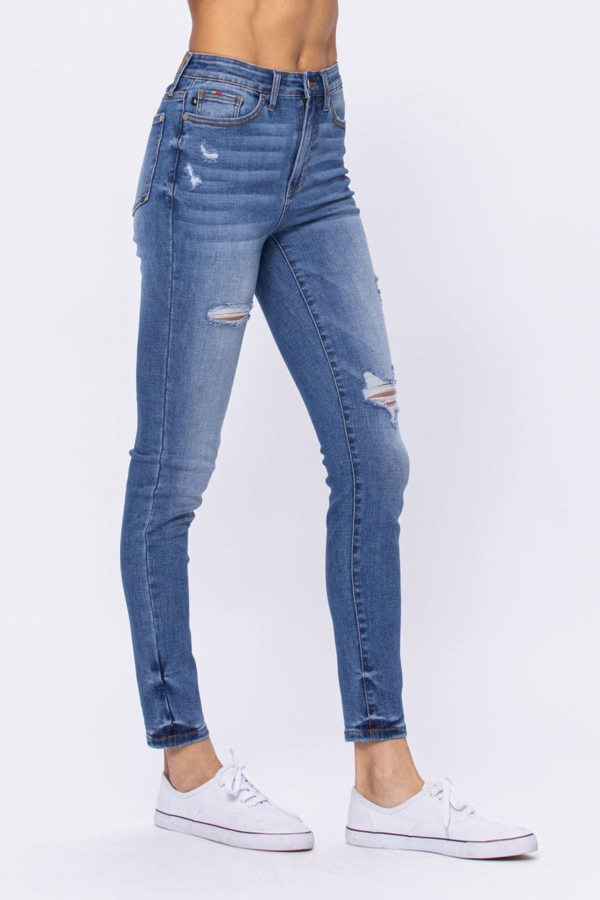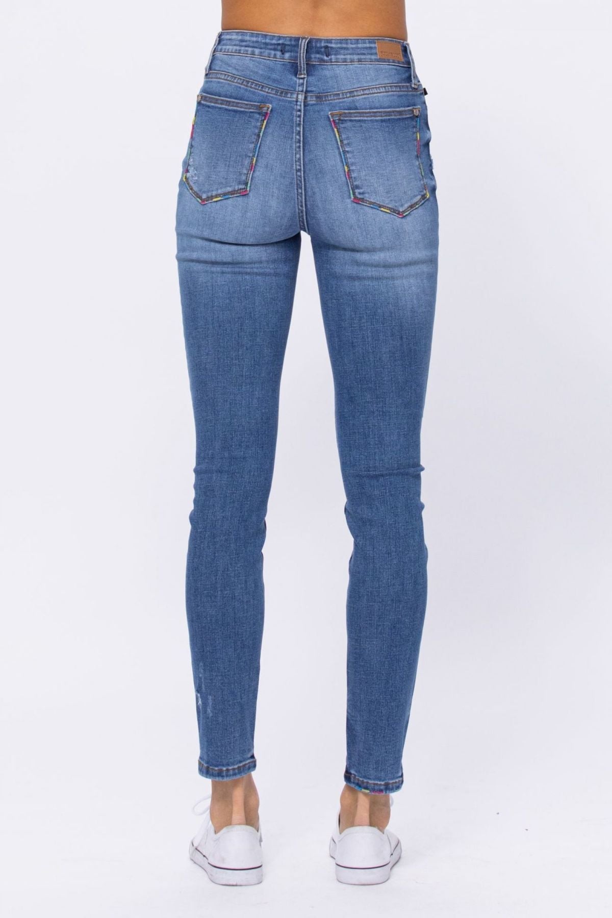 Judy Blue Light Blue Embroidery Pocket Distressed Skinny Jeans