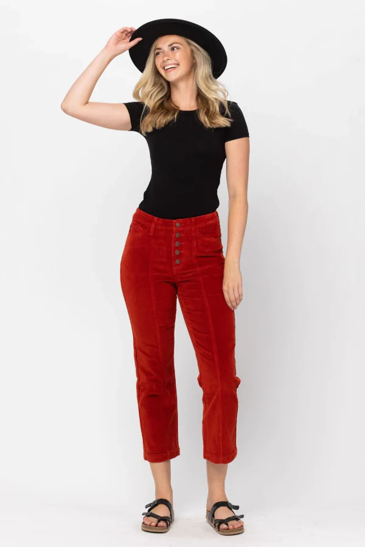 Judy Blue Mid-Rise Button Fly Corduroy Ankle Straight Pants