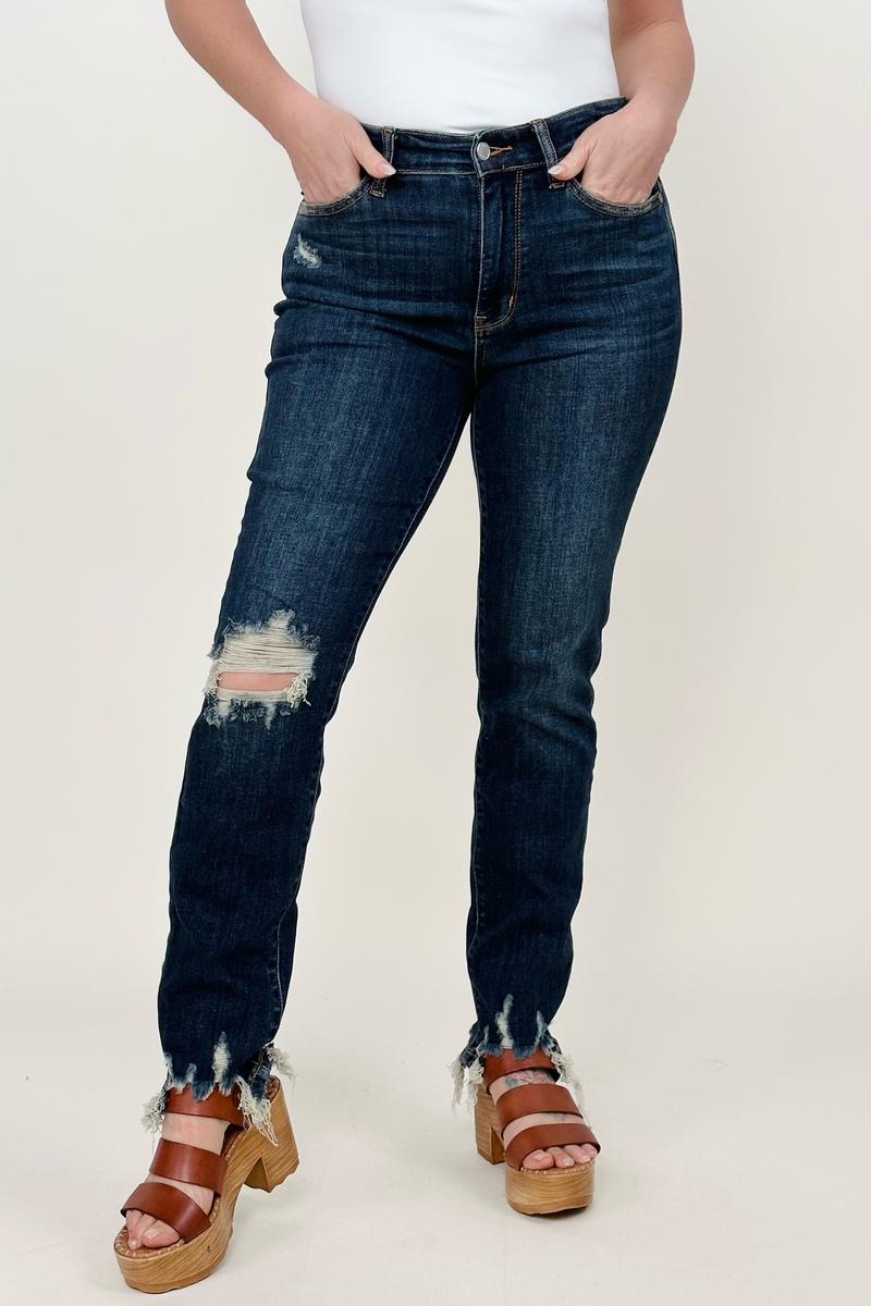 Judy Blue Mid-Rise Chopped Hem Relaxed Skinny Jeans