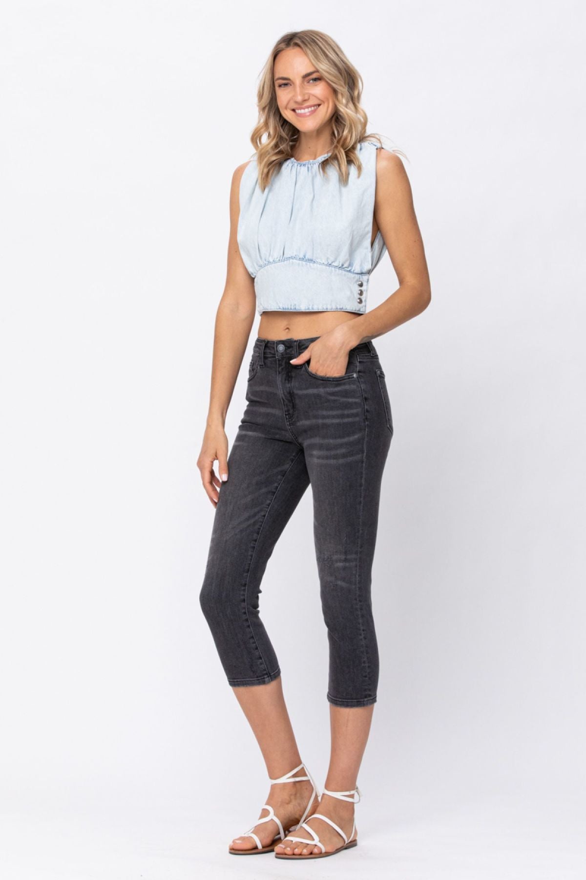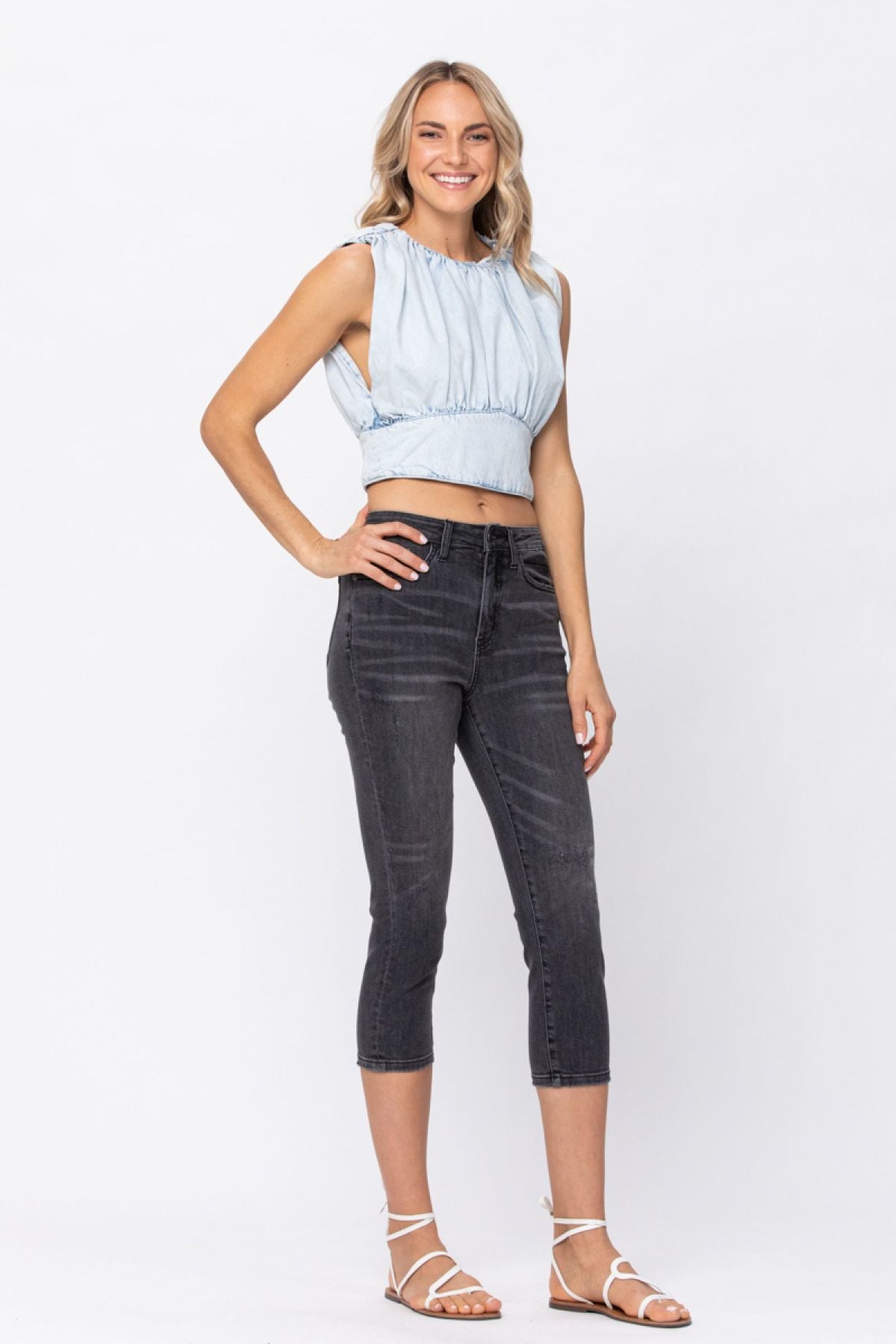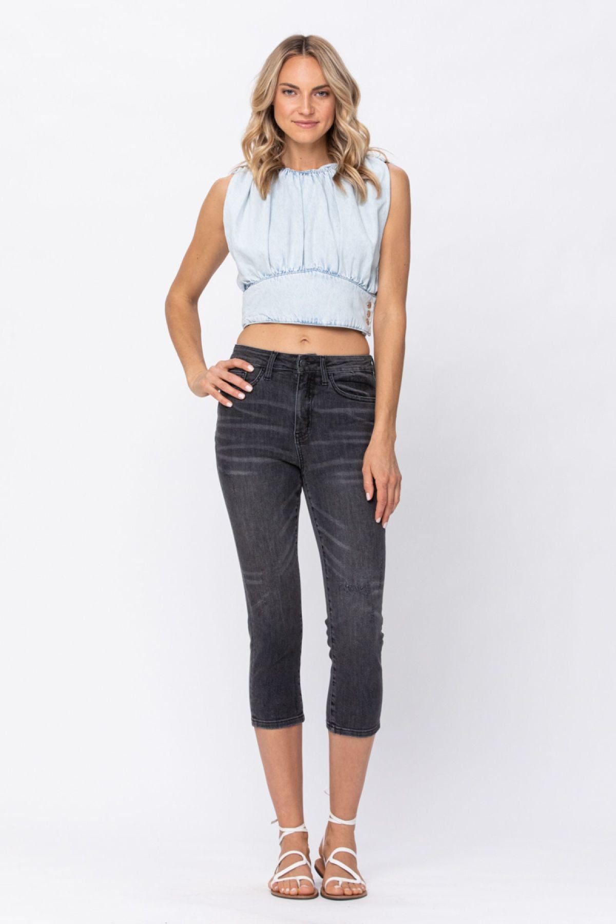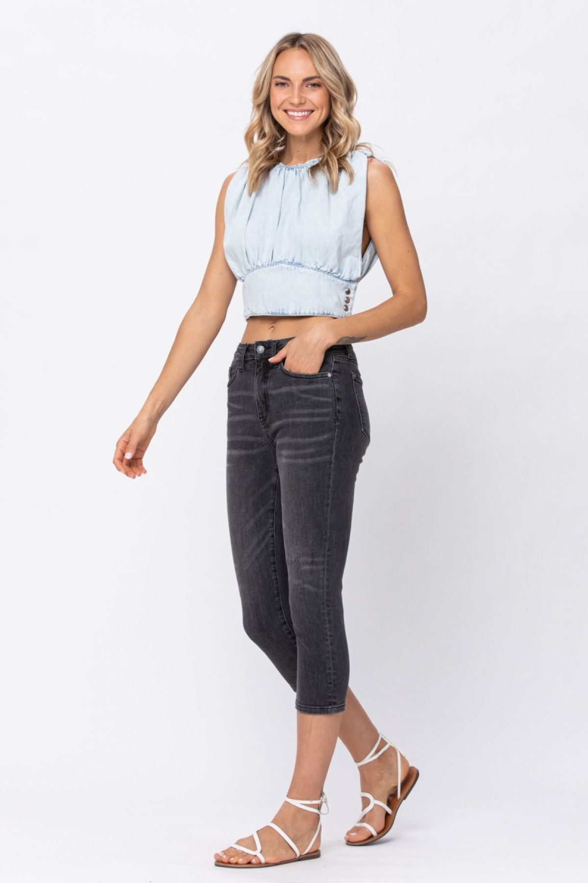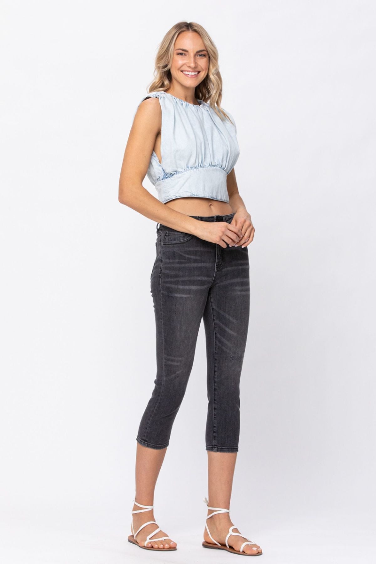 Judy Blue Mid-Rise Cuffed Skinny Capri Jeans