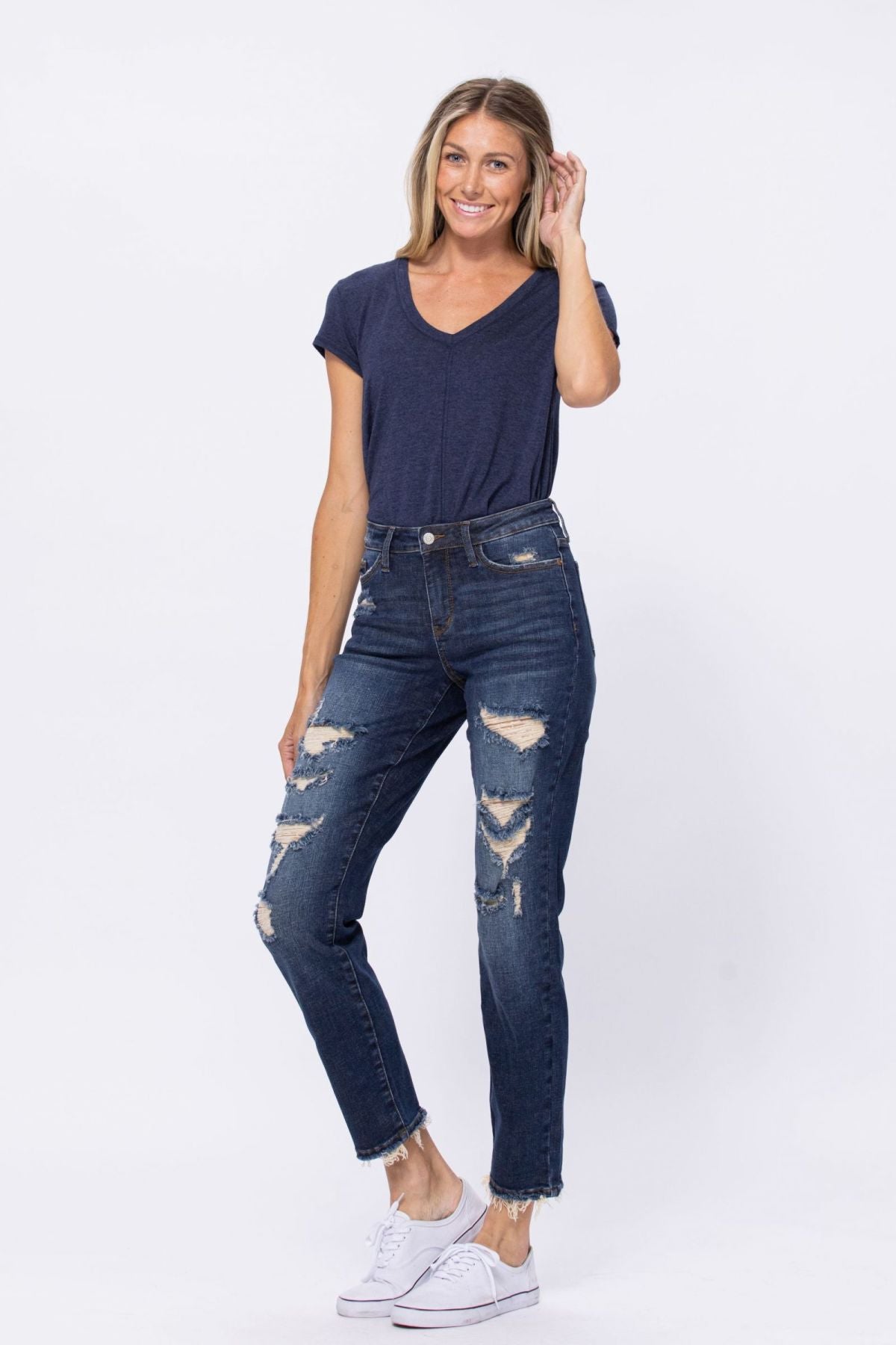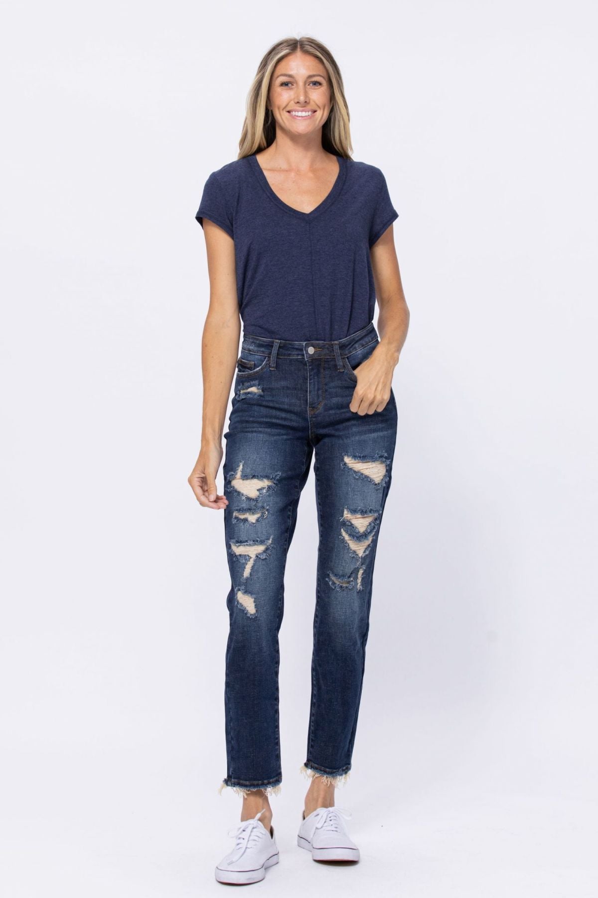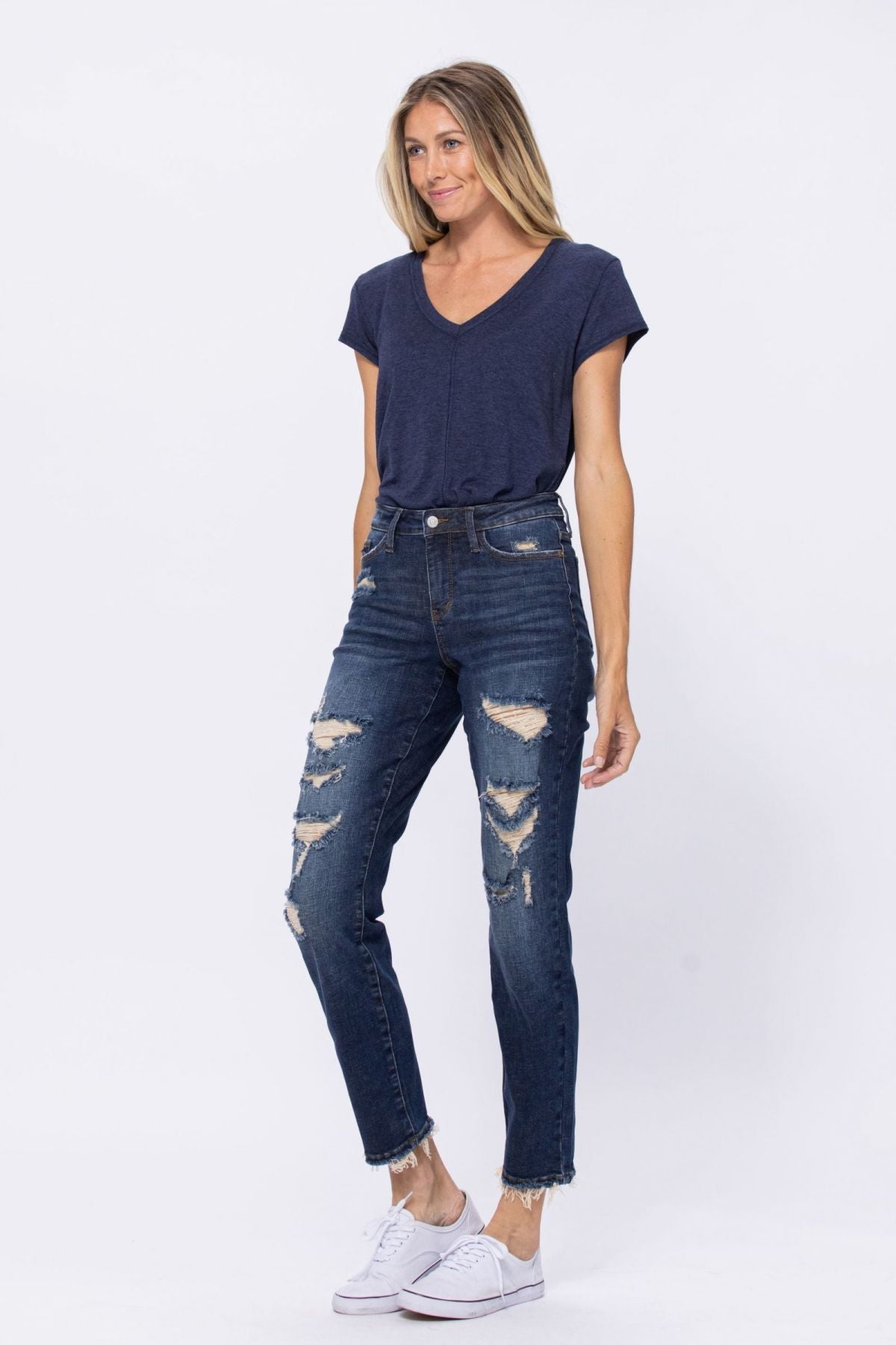 Judy Blue Mid-Rise Distressed Boyfriend Jeans