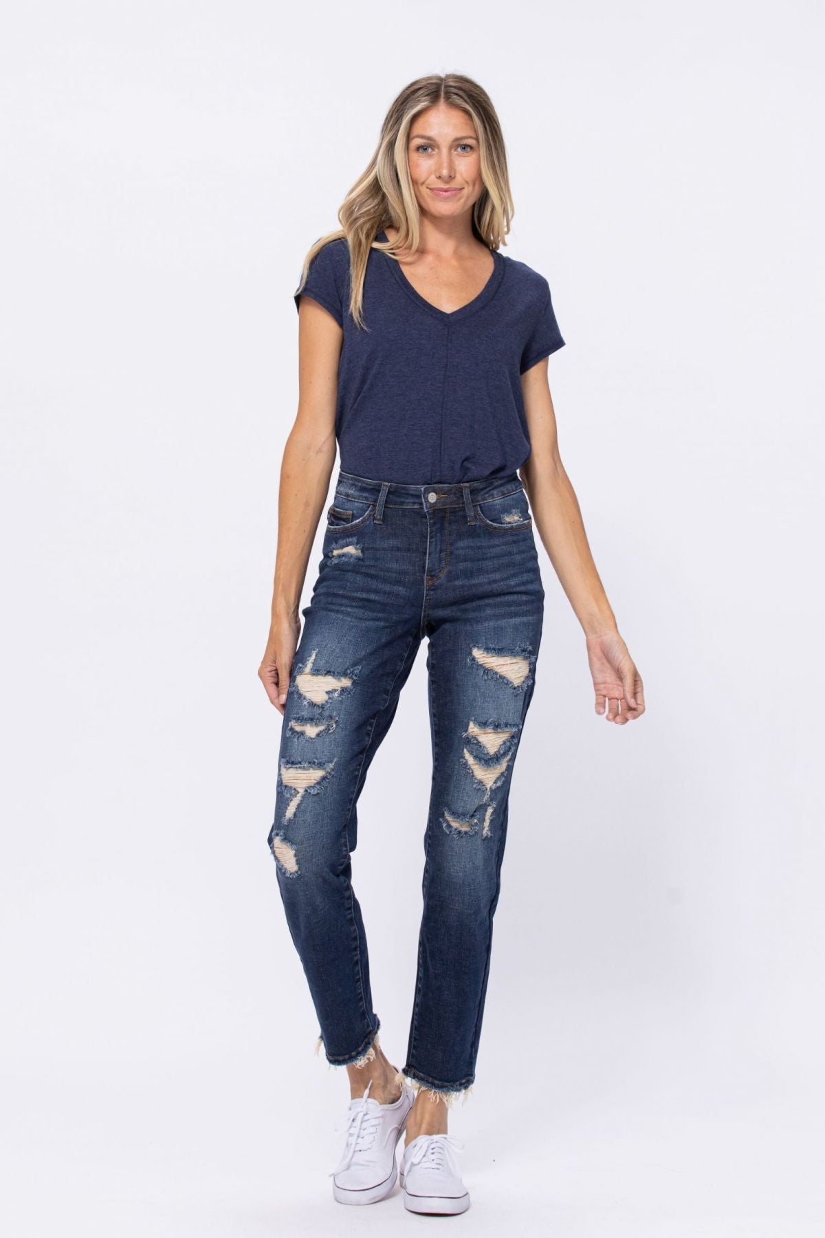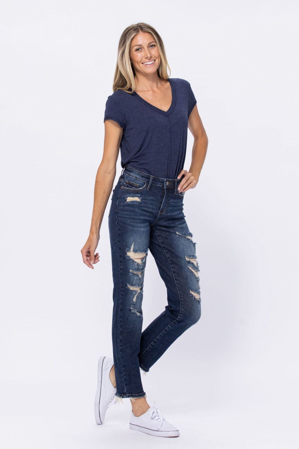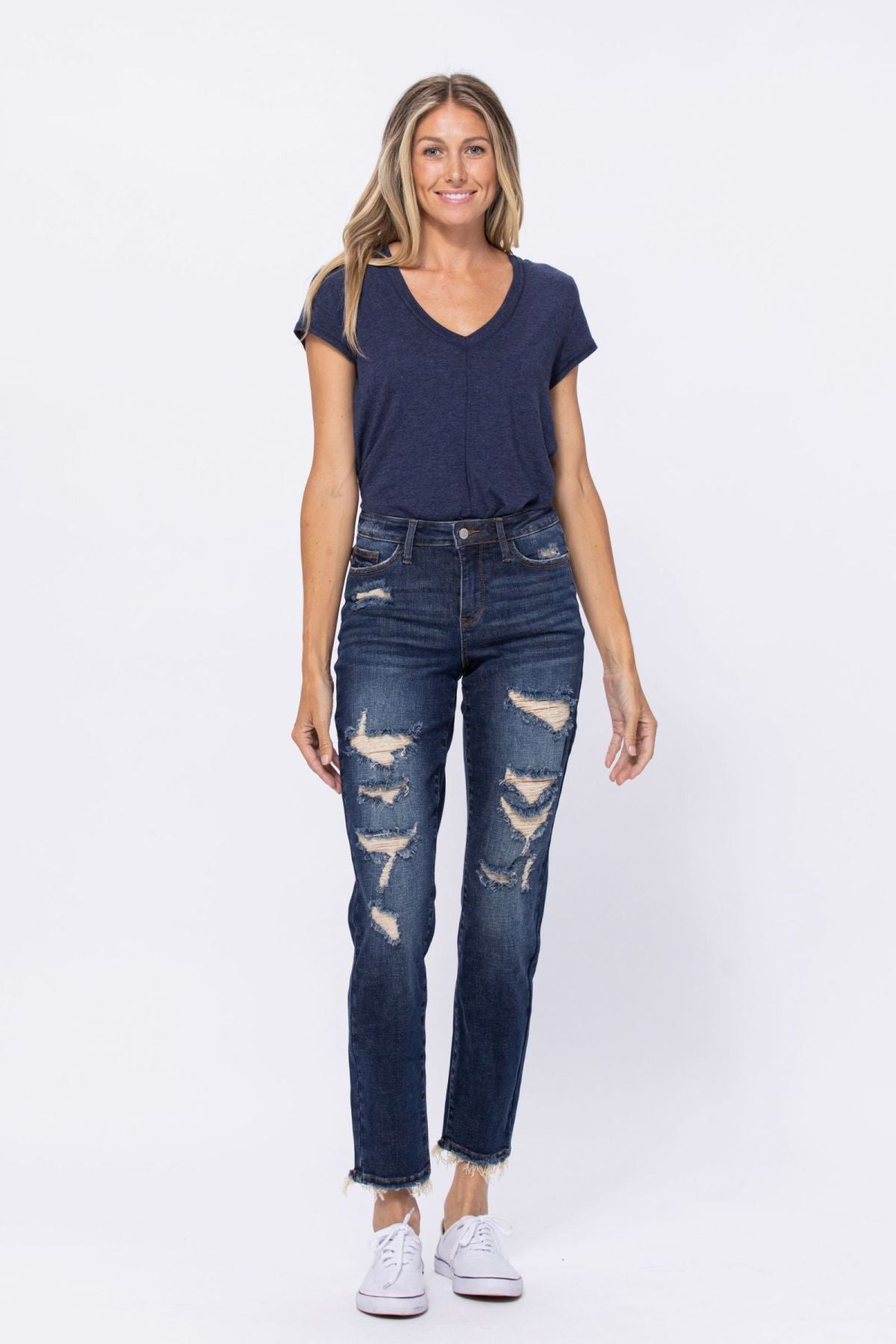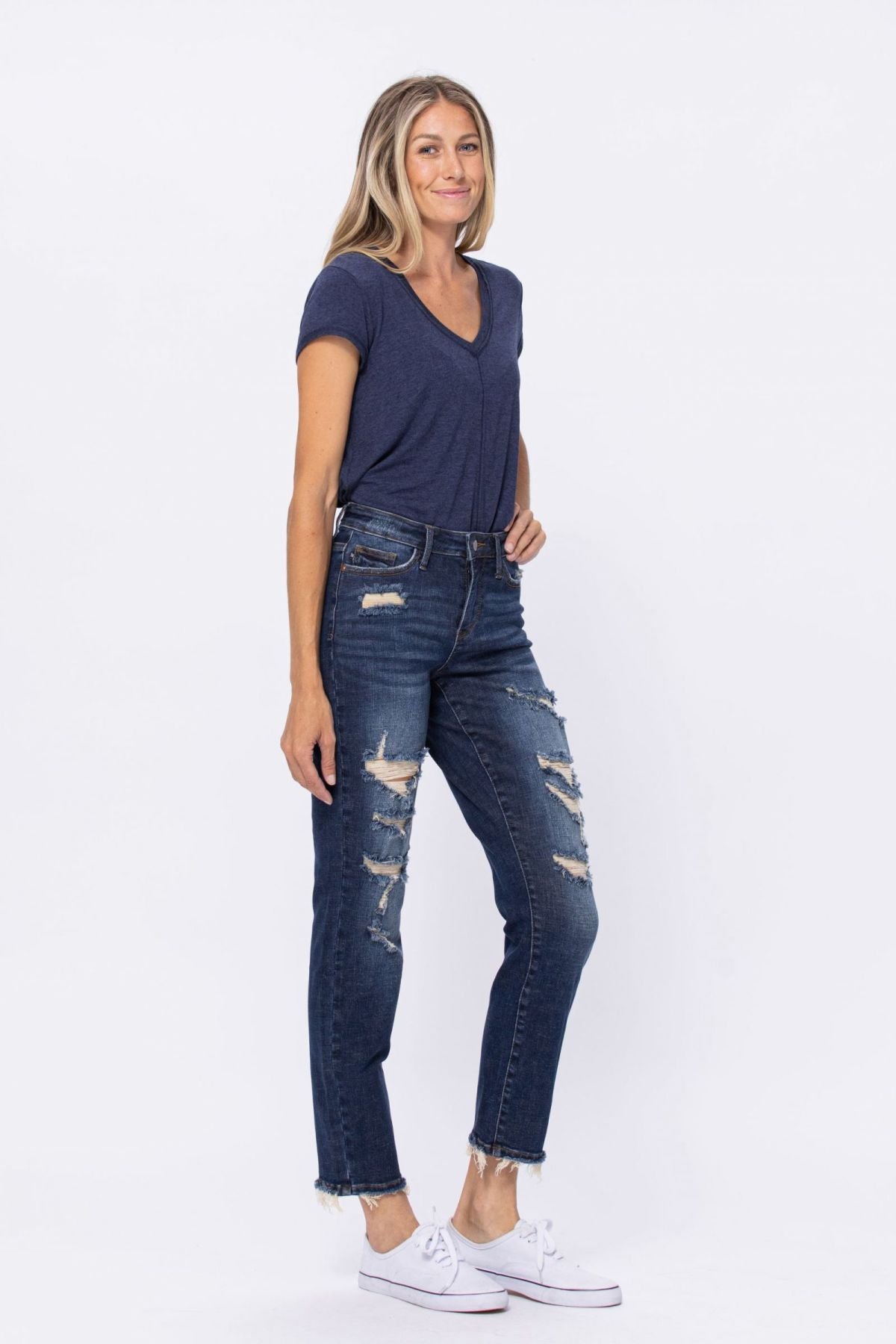 Judy Blue Mid-Rise Distressed Boyfriend Jeans