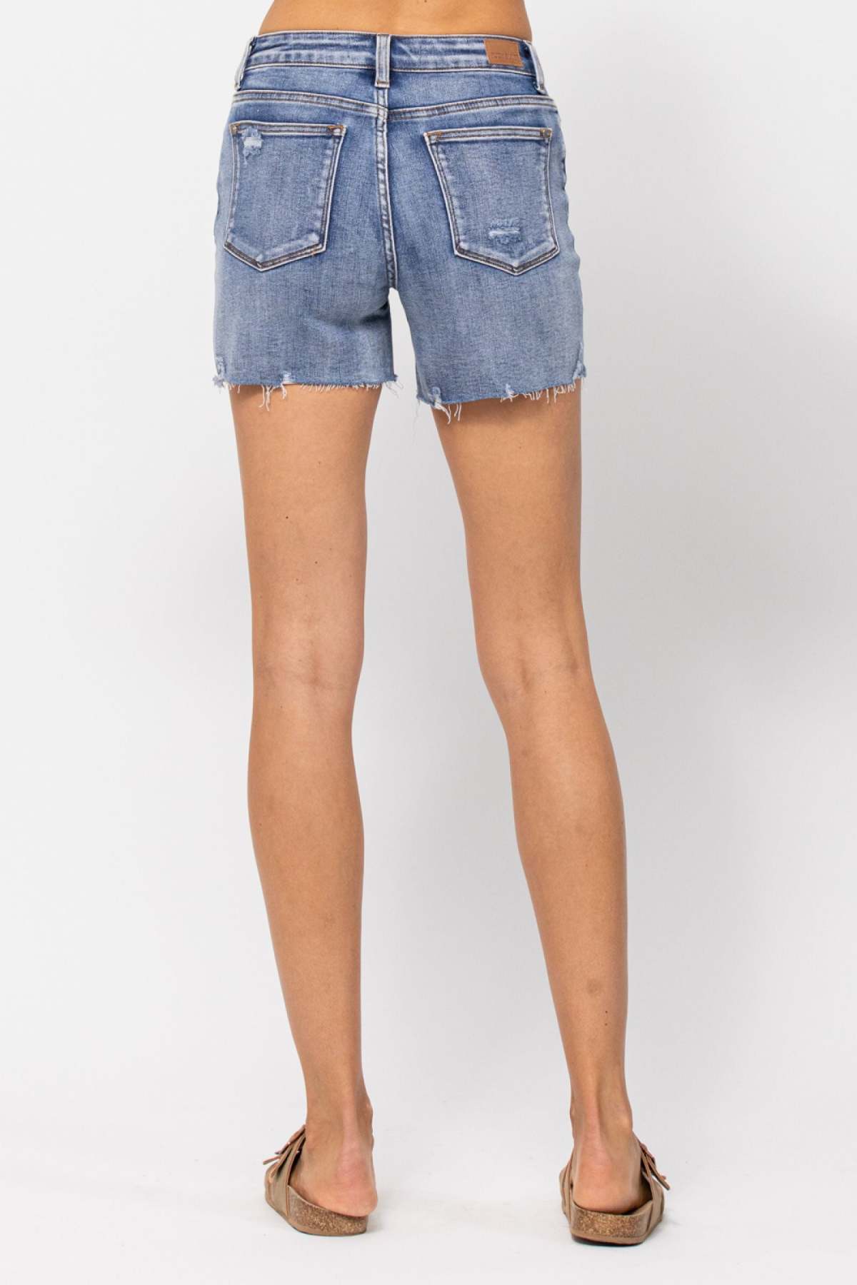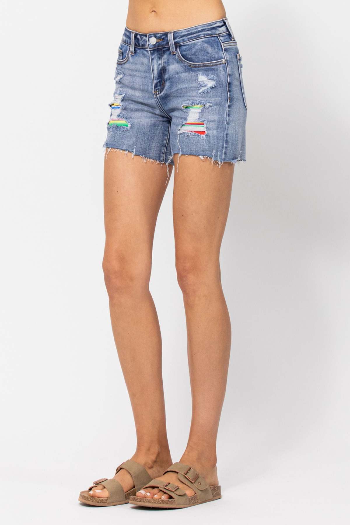 Judy Blue Mid-Rise Serape Patch Cut-Off Denim Shorts