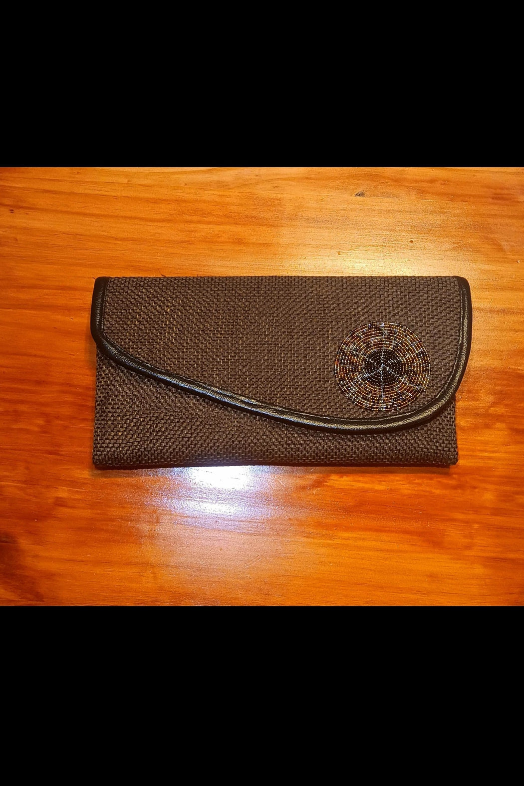 This clutch purse was handmade in Kenya. It is sturdy, eye-catching and easy to style. The bag has an additional zipper pocket on the inside for safe storage of IDs or anything else you may need to section off. The clutch can also fit into a bigger purse comfortably. Being able to carry the clutch in a larger bag would allow you to switch up your look easily depending on your appointments for the day. All our clutches are lined. Make it yours today. Measurements: 11" wide, 6 1/2" high.