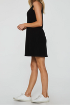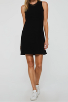 Get the perfect combo of style and comfort with the Justine sleeveless mini dress! This chic high neck piece can be worn solo or layered for a timeless look. The flattering swing fit adds a touch of grace to any occasion.