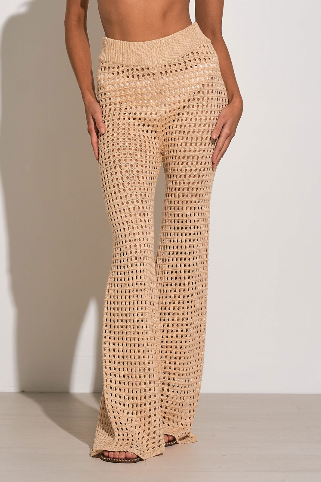 Get ready to turn heads with the Kalena Crochet pants! These cute and sexy resort pants feature long wide legs and an elastic broad waist, making them perfect for a day at the beach. With their unique crochet design, you'll be both stylish and comfortable. Bring on the sun, sand, and fun!