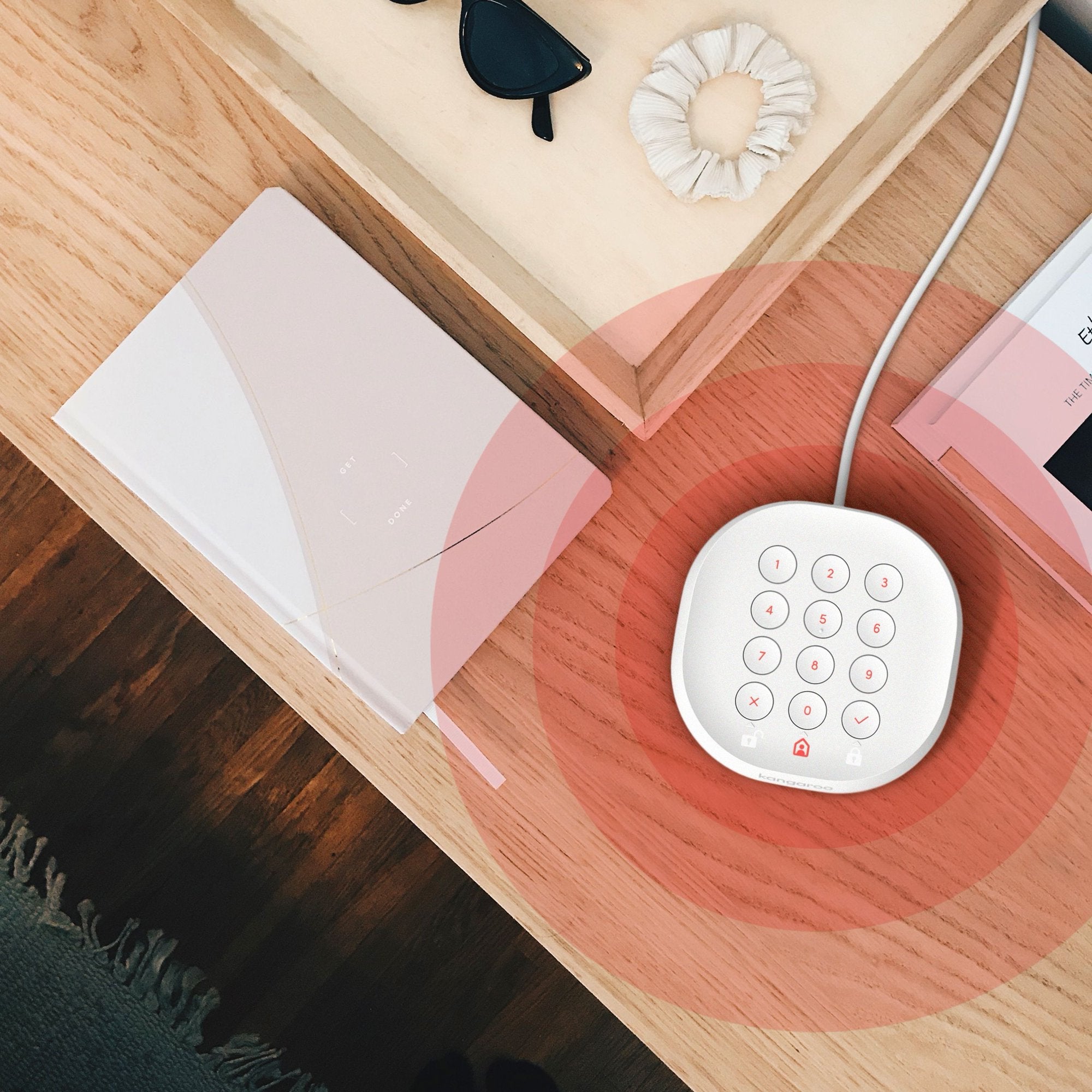 Add even more security and convenience to your Kangaroo sensors with the Kangaroo Siren + Keypad: your keypad and alarm.